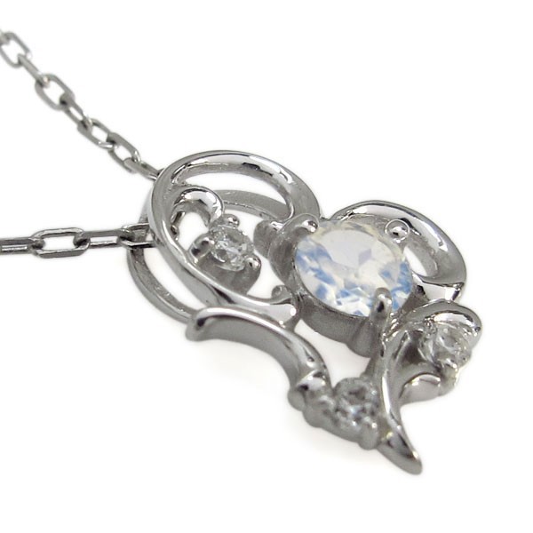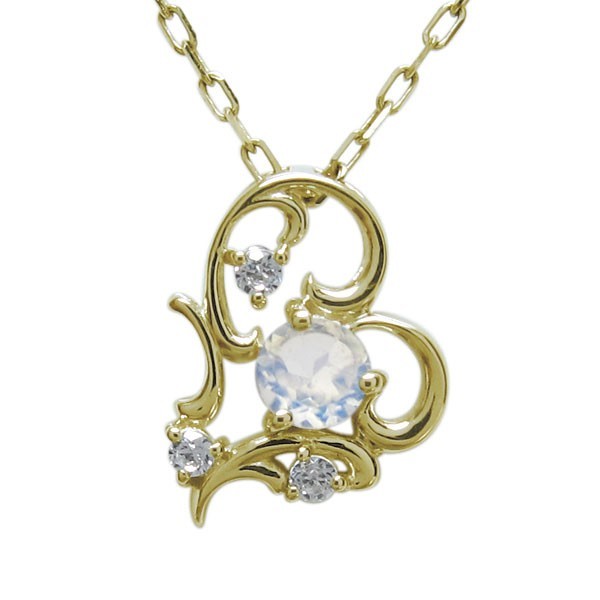 6月誕生石ロイヤルブルームーンストーンを使用した18金製の唐草(アラベスク)&ハートモチーフネックレスペンダントです。