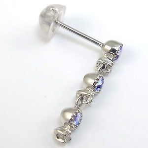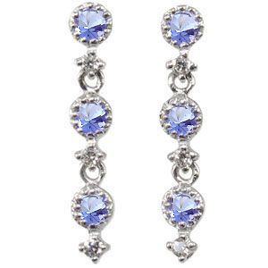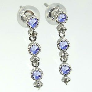 12月誕生石タンザナイトを使用したゆらゆら揺れるアンティークデザインのプラチナ製ピアスです。