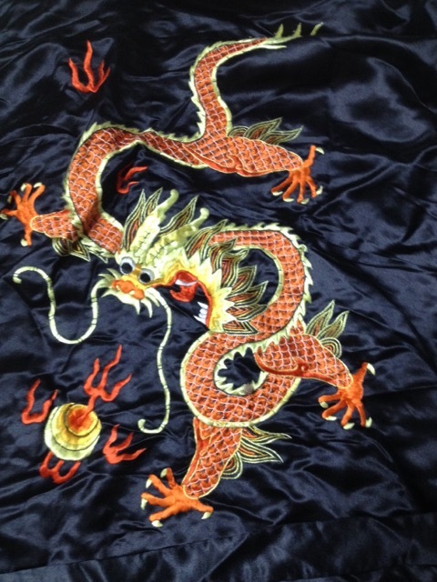 ビンテージ 龍 中国 ガウン シルク スカ チャイニーズ ドラゴン スカシャツ チャイナ スーベニア シャツ 着物 PURE SILK 古着