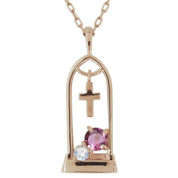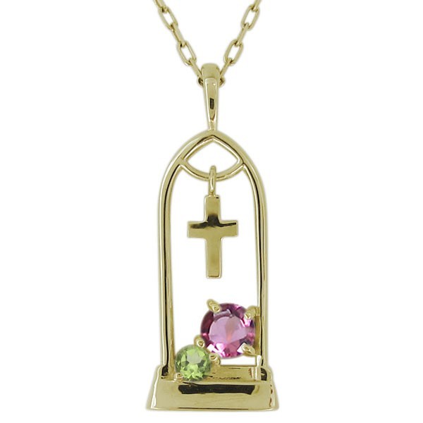 10月誕生石ピンクトルマリンを使用した10金製の、教会をモチーフにしたネックレス・ペンダントです。