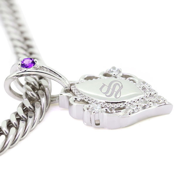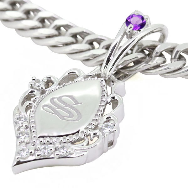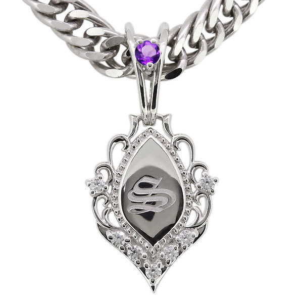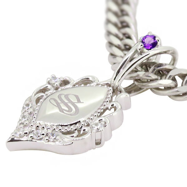 2月誕生石アメジストを使用したシルバー製の、イニシャル入りメンズネックレス(ペンダント)です。