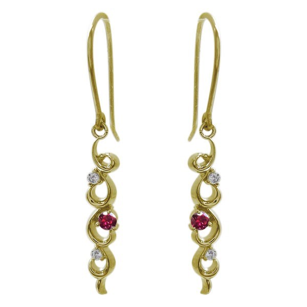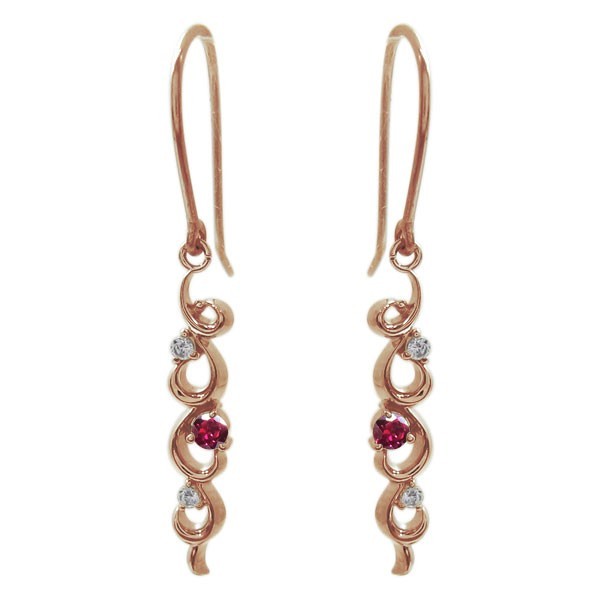 アラベスク ピアス ルビー ピアス 10金 唐草 フックピアス