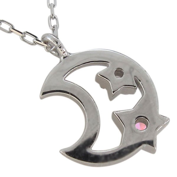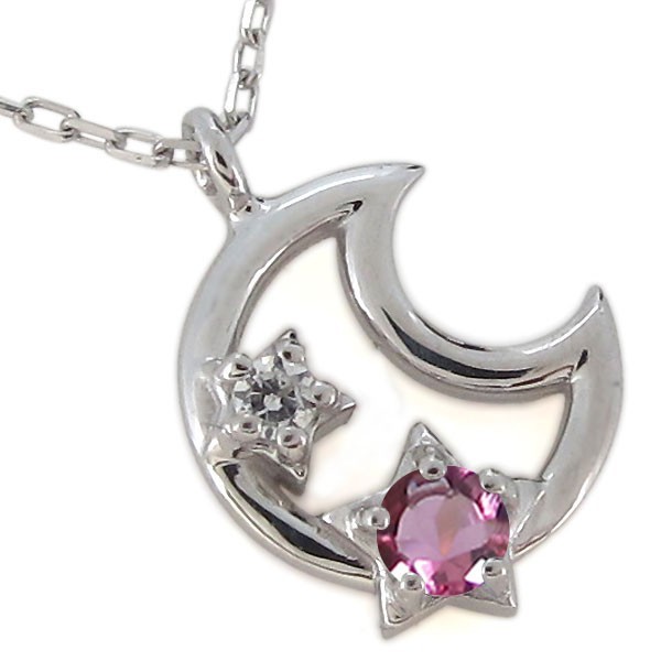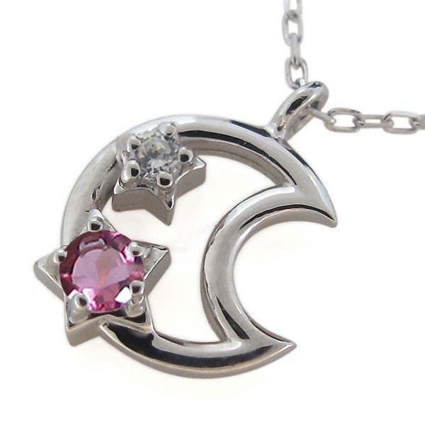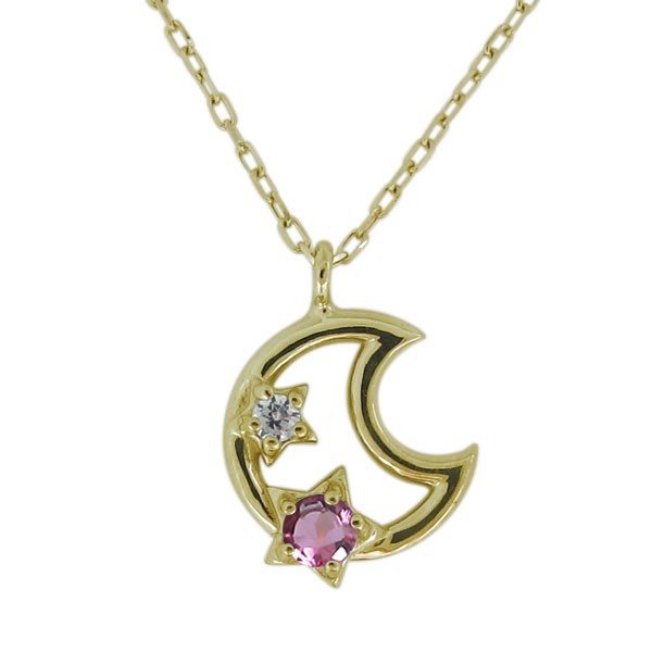 10月誕生石ピンクトルマリンを使用した18金製の、三日月(ムーン)と星(スター)モチーフネックレス・ペンダントです。