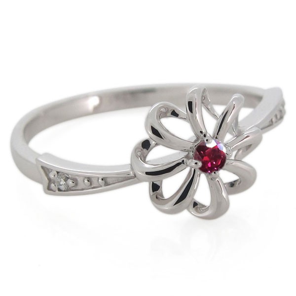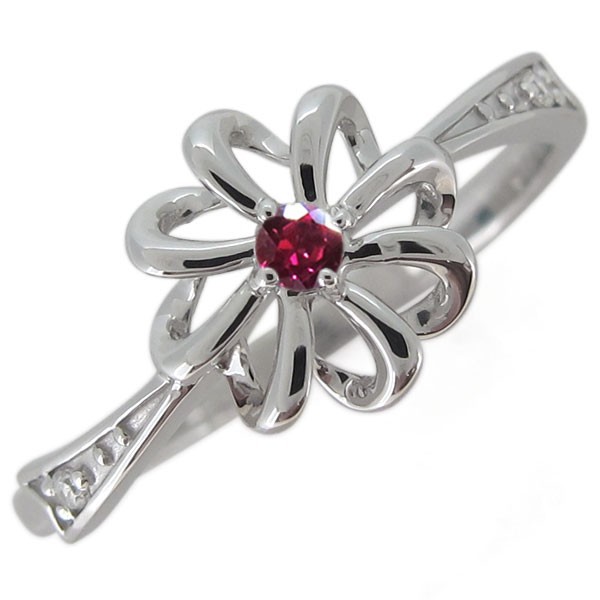 7月誕生石ルビーを使用したシルバー製の、フラワー(花)モチーフのリング(指輪)です。