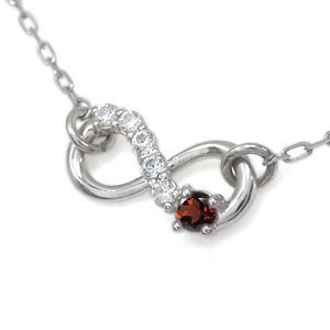 1月誕生石ガーネットを使用した10金製の、インフィニティ(無限)をモチーフにしたネックレスです。