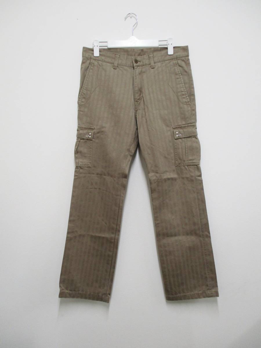 ★571 【送料無料】 ABAHOUSE アバハウス チノパン サイズ2 M相当 綿100素材 フラップポケット デイリー使い キャメル レイズドストライプ