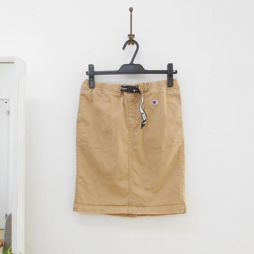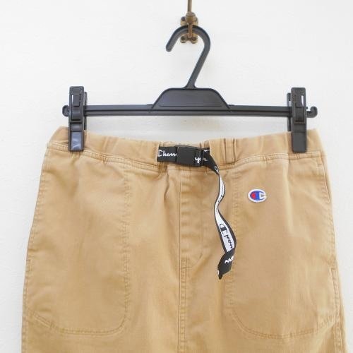 チャンピオン Champion レディース 春夏秋などに着て頂けそうなタイトスカートです。お色はベージュで、前のロゴ、ウエストのロゴ入りベルト付属がポイントです。色んなお洋服に合わせてどうぞ。