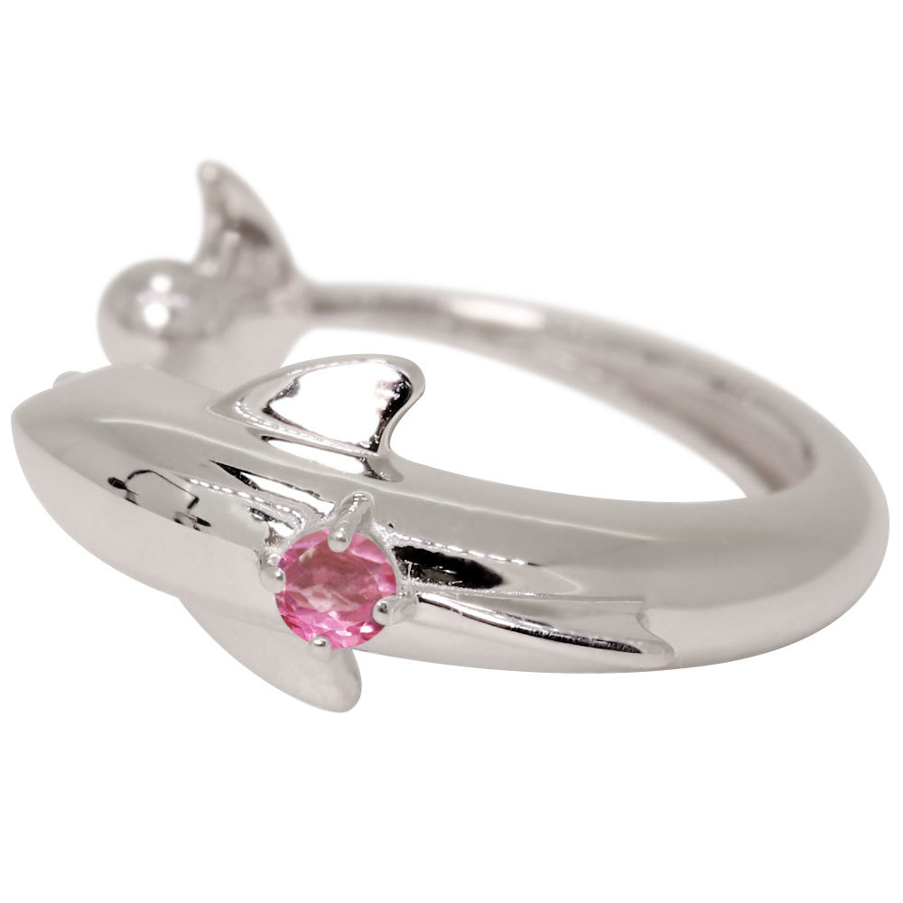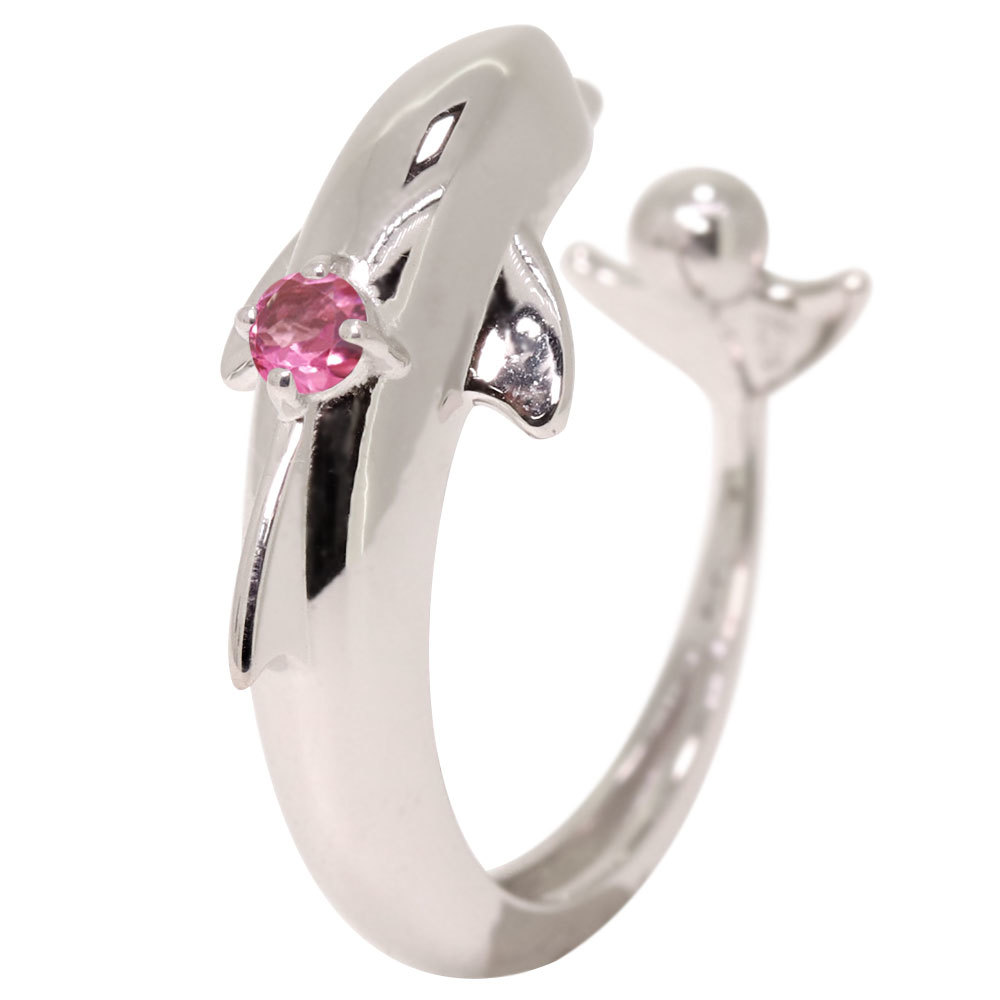 10月誕生石ピンクトルマリンを使用したプラチナ製の、イルカ(ドルフィン)モチーフのイヤーカフです。