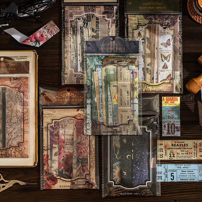 40枚 シール アンティーク ビンテージ デコ コラージュ レトロ 0606-5