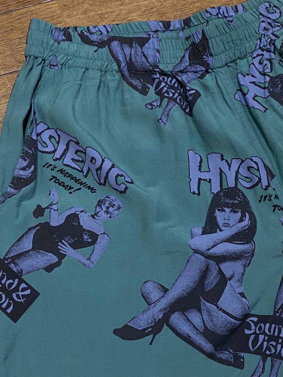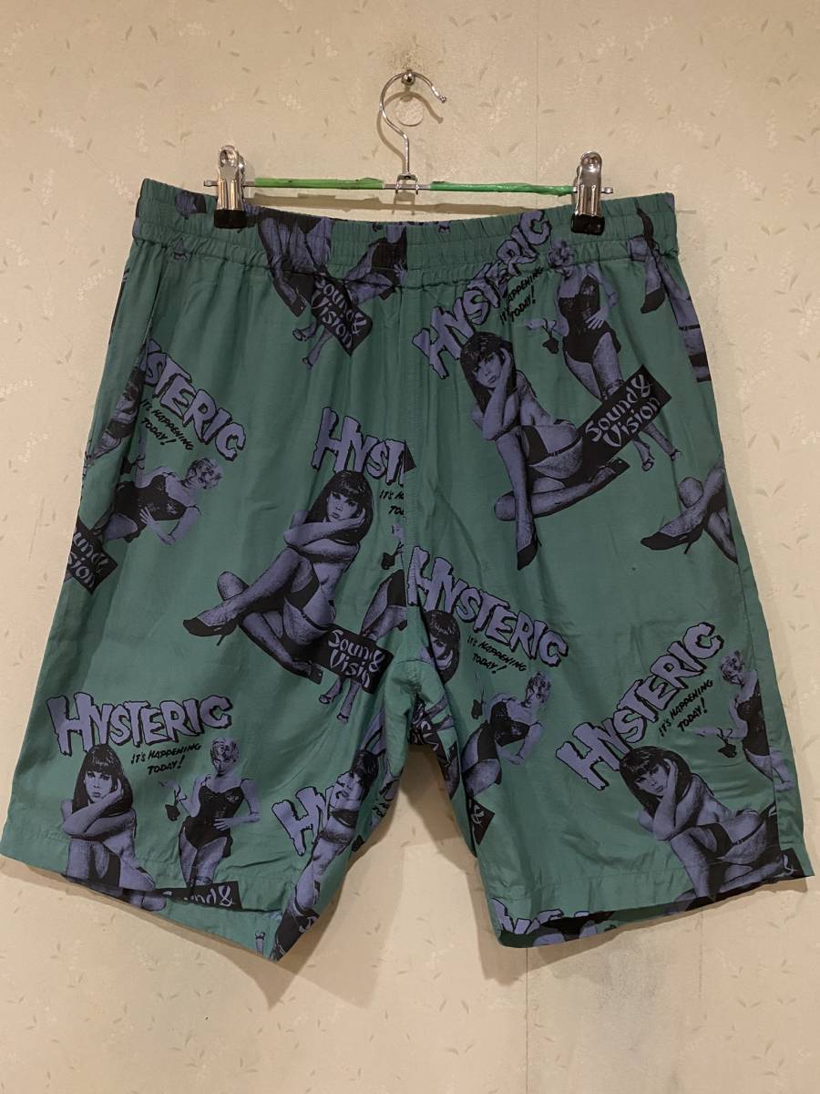 ※HYSTERIC GLAMOUR ヒステリック グラマー 02211AM01 ガールプリント ハーフ ショートレーヨンパンツ グリーン系 日本製 L BJBB.I