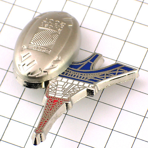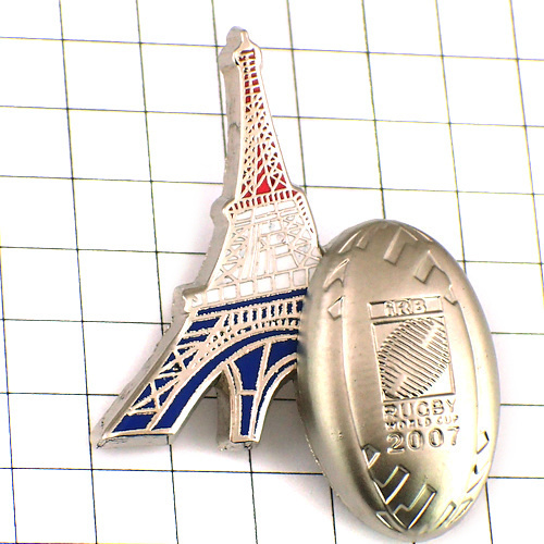 | "ピンバッジ・ラグビー球エッフェル塔トリコロール国旗色"の商品説明 | |