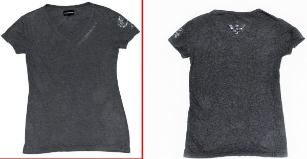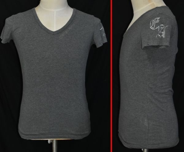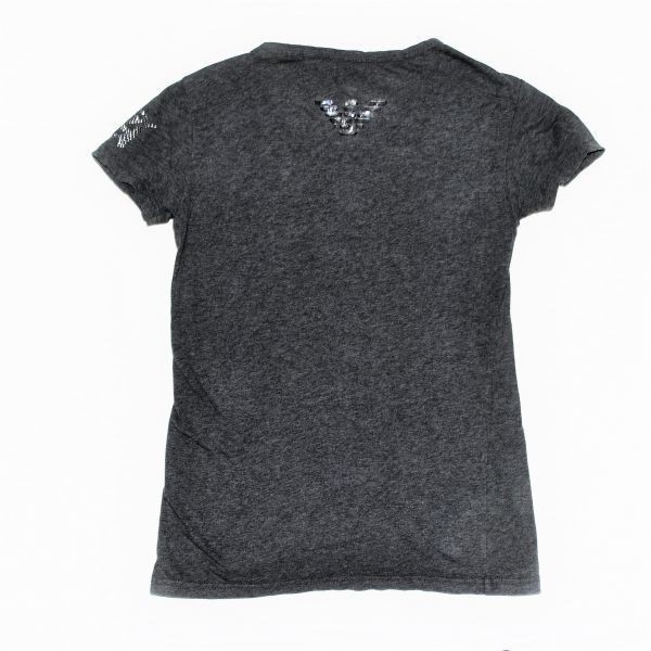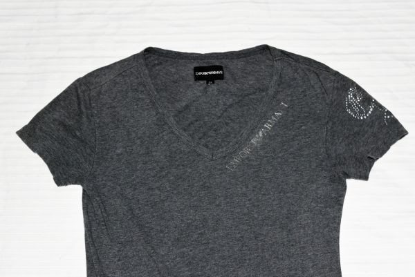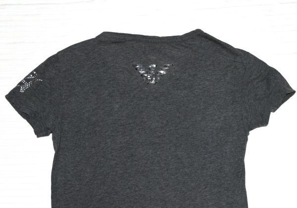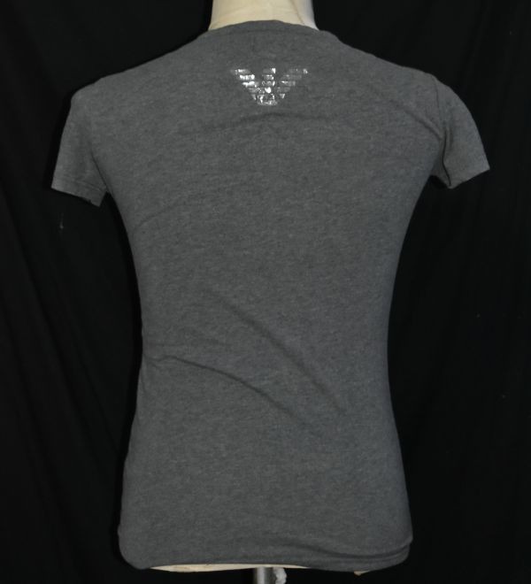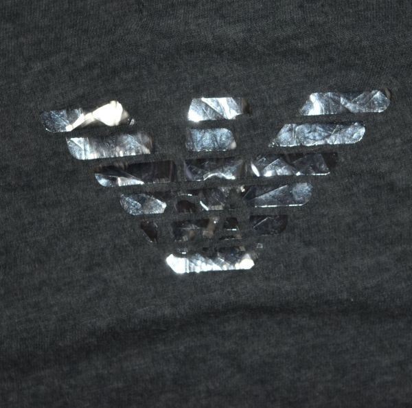 ★エンポリオアルマーニ★ EMPORIO ARMANIロゴ 背中はシルバーの目立つイーグル グレーの半袖カッコイイストレッチVネックTシャツXS(SM)