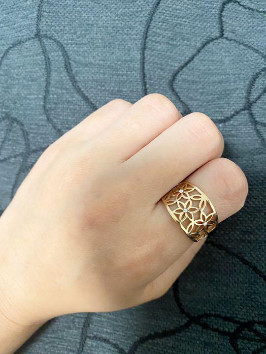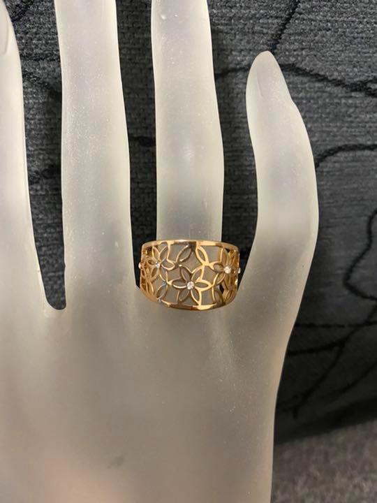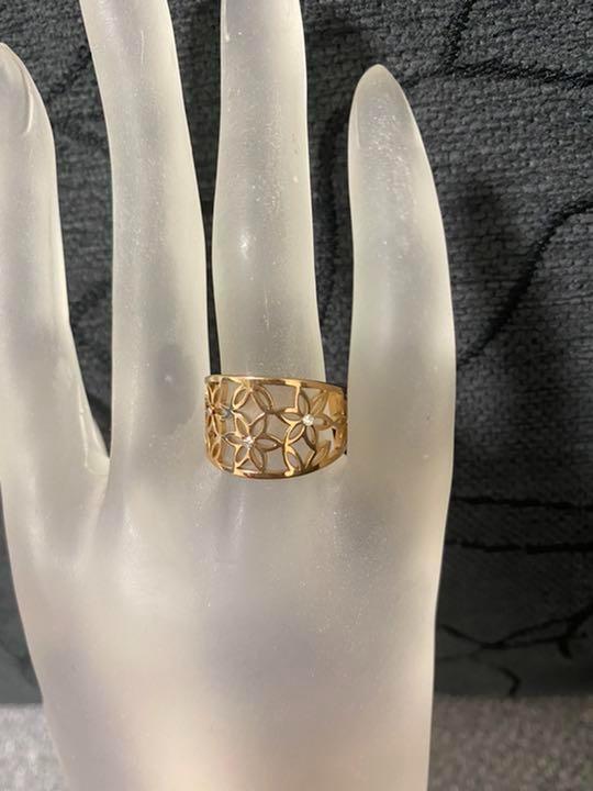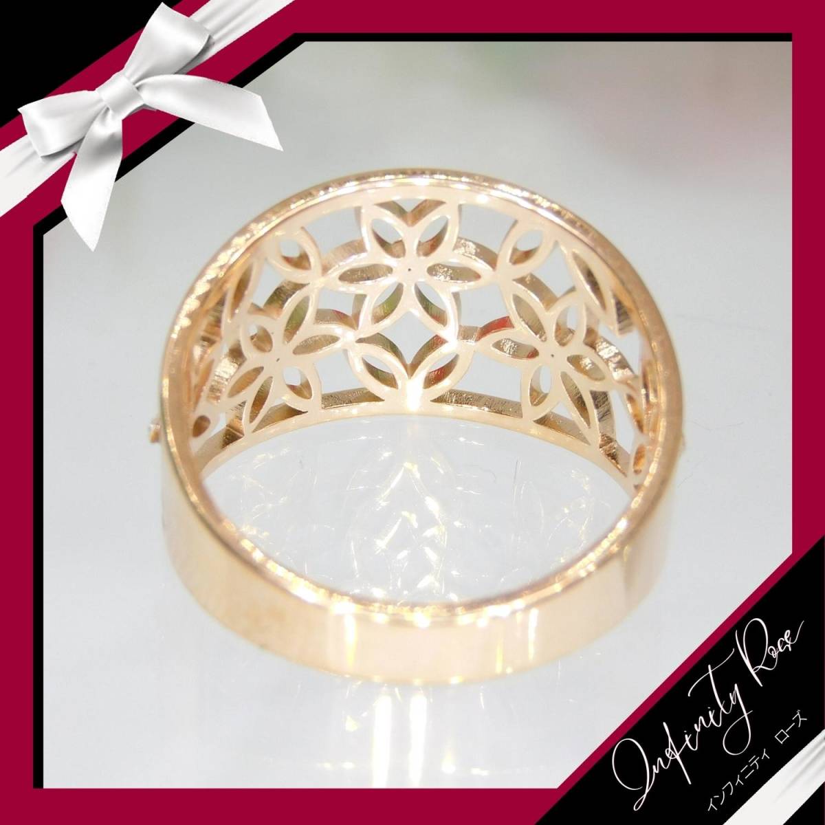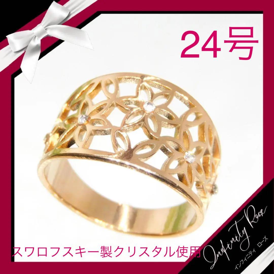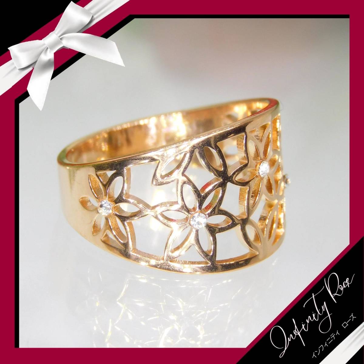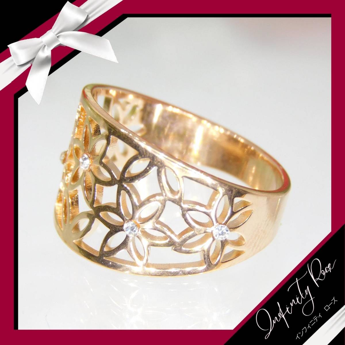 (1175)24号 ピンクゴールド繊細デザインフラワーステンレスリング 指輪 スワロフスキー製クリスタル使用