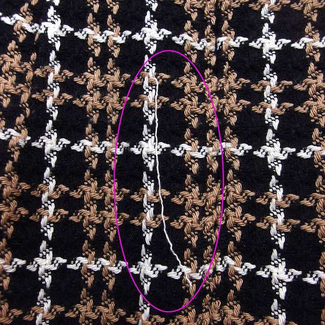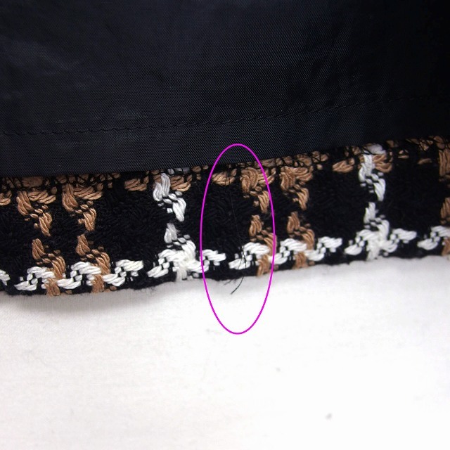 【状態】この商品には下記のようなダメージがあります。 ・ブランドタグ上にほつれ ・前身頃の中央ウエスト下に数点のほつれ ・裾中央にほつれ ・裏地裾中央にほつれ ・後身頃の中央上部にほつれ ・全体的に毛羽立ち ※全体的に中古品としての使用感と上記のようなダメージがありますが、通常使用には支障のない商品です。掲載写真や記載内容をご確認いただき、ご理解の上ご購入ください。