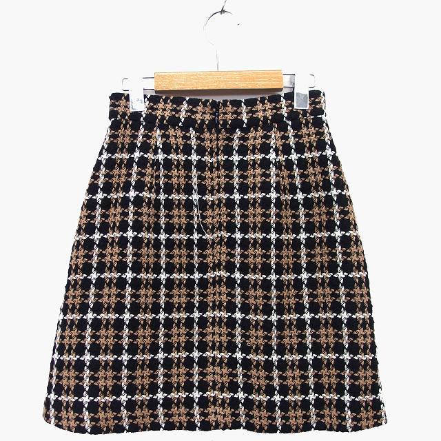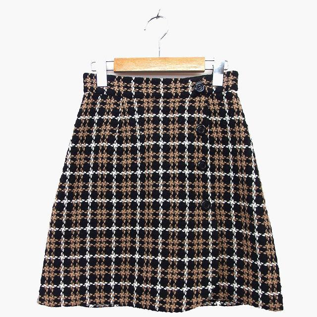 リランドチュール Rirandture ツイード スカート 台形 ミニ 膝上 ウール混 飾りボタン 0 ブラック 黒 /HT8 レディース