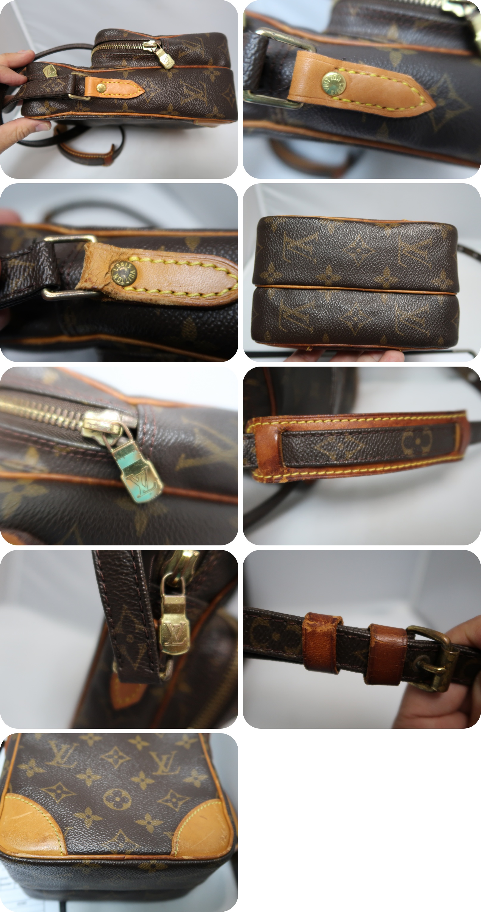 | <内側> | ポケット内部の合皮を私が張り替えしております。問題なくご活用いただけるコンディションです。 前面ポケットの底部に色が薄くなっている箇所が見られます。 |