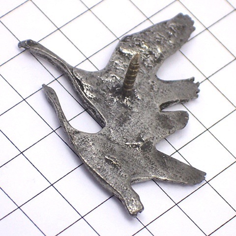 | ピンズは、裏側に針が付いており、金属の留め金でとめるようになっています。 留め金が付属しています。新品の留め金も一緒に発送いたします。 | |