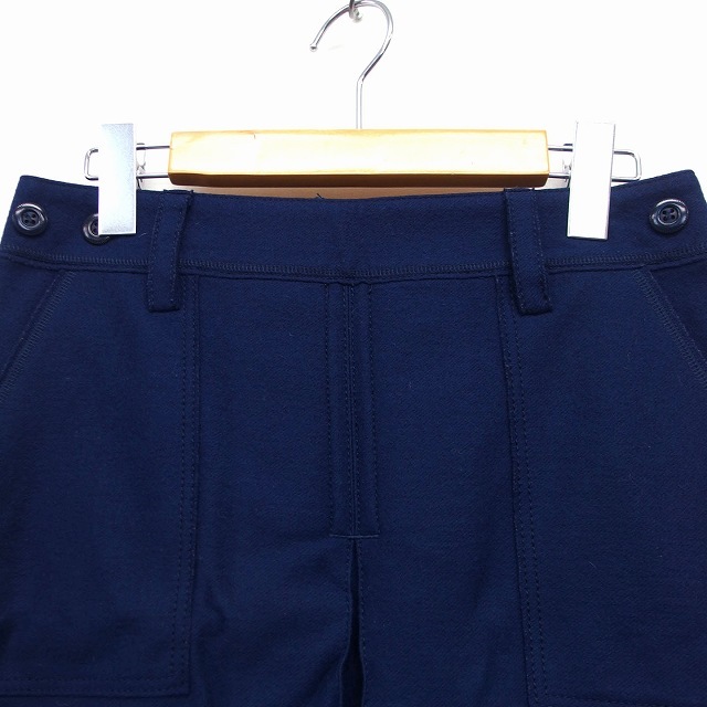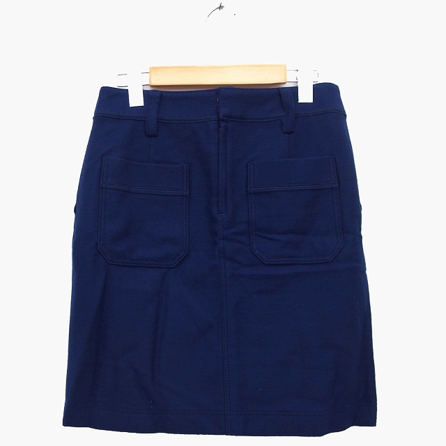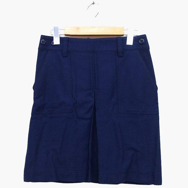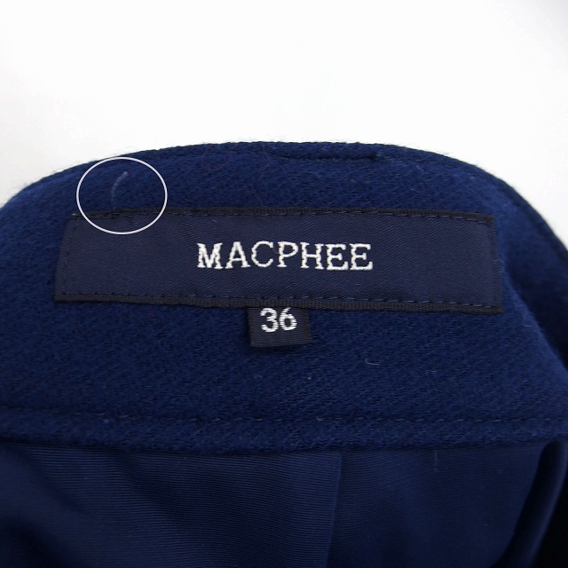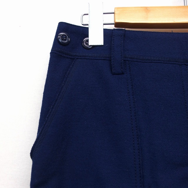 マカフィー MACPHEE トゥモローランド 台形 スカート ミニ 膝上 無地 シンプル タック 飾りボタン ウール 毛 36 紺 /HT29 レディース