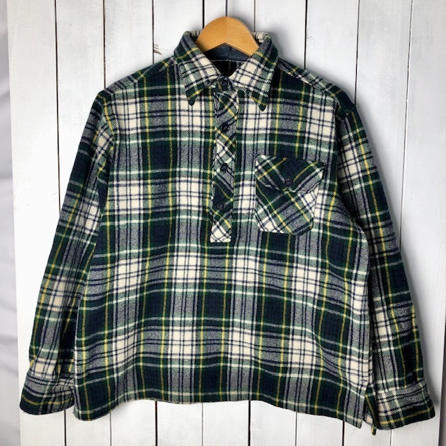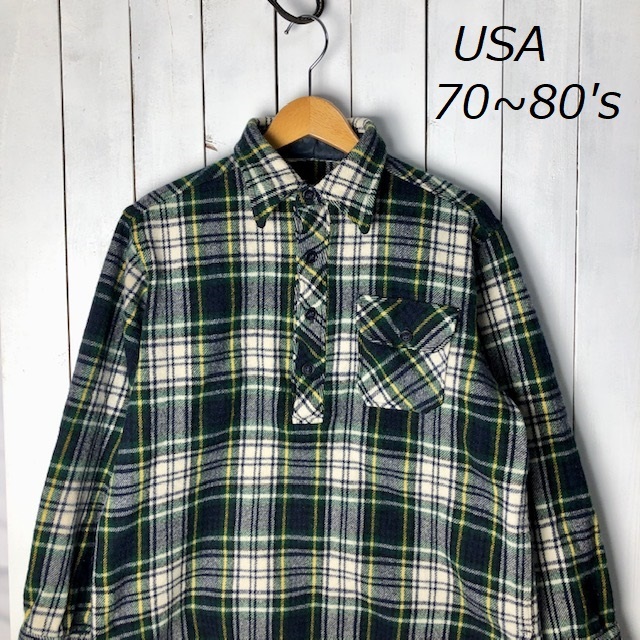 sh●444 USA古着 70s~ タータンチェック 厚手プルオーバーウールシャツ ゆったりM程度 オールド ヴィンテージ L.L.Bean エルエルビーン