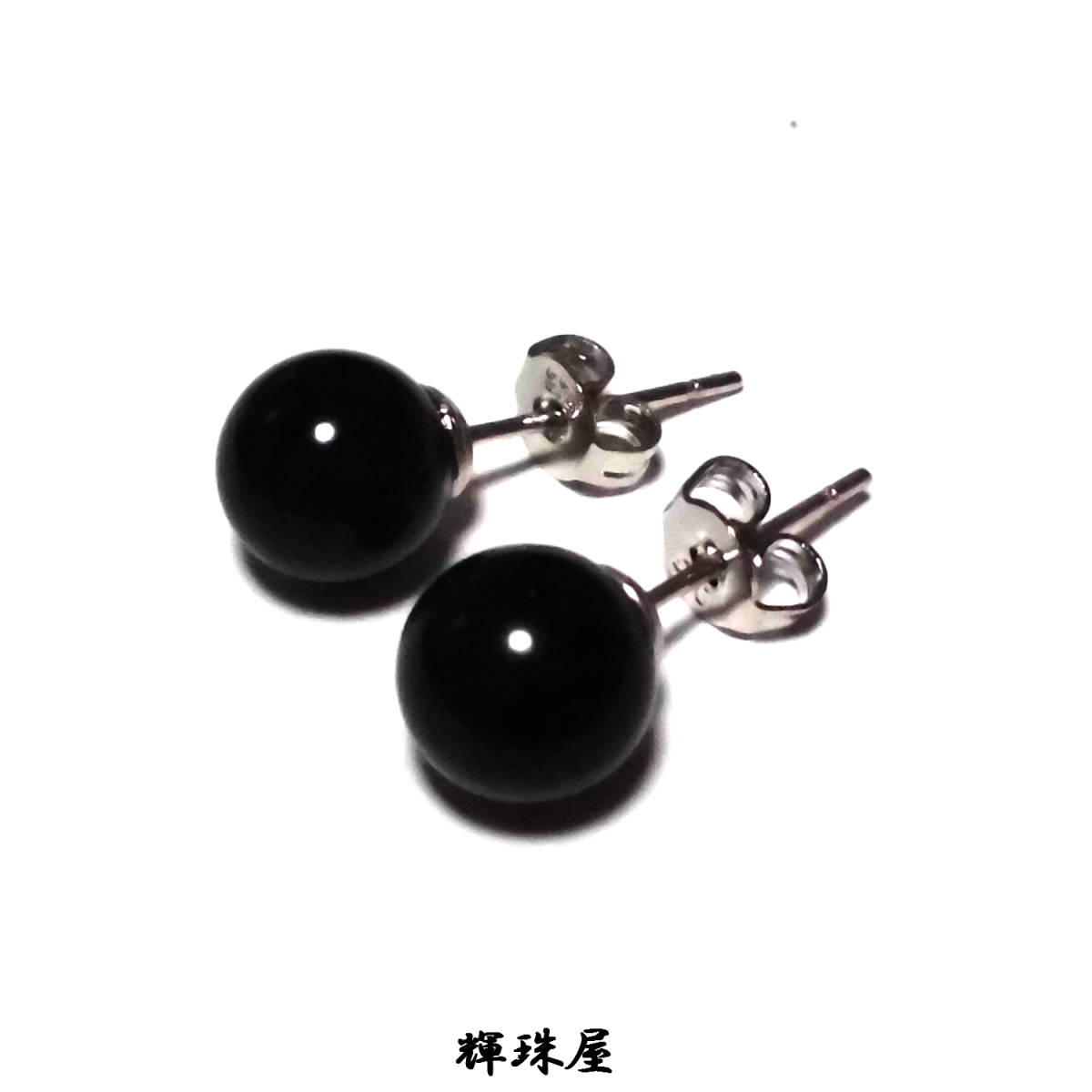 真珠貝パールネックレス みがき本貝 ブラックパールピアスセット 8mm38cm シリコンクッション&ステンワイヤー高級仕様