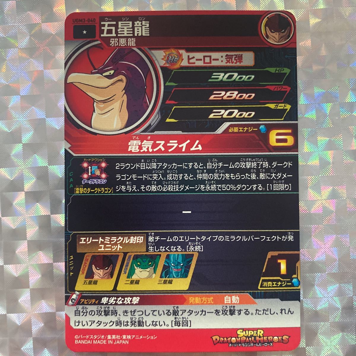 UGM3弾コモン/ 五星龍(通常)/ UGM3-040/ 技:電気スライム/ スーパードラゴンボールヒーローズ/ レアリティ:☆/ BANDAI