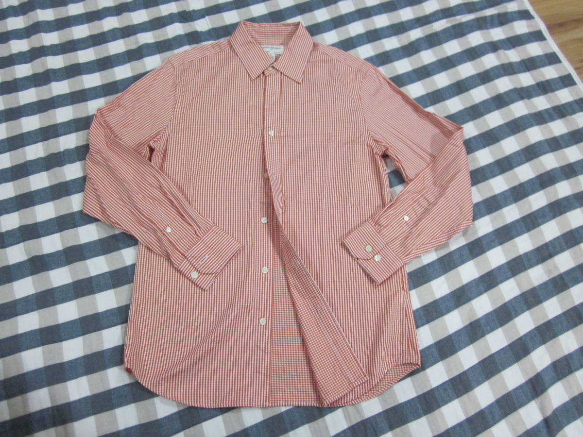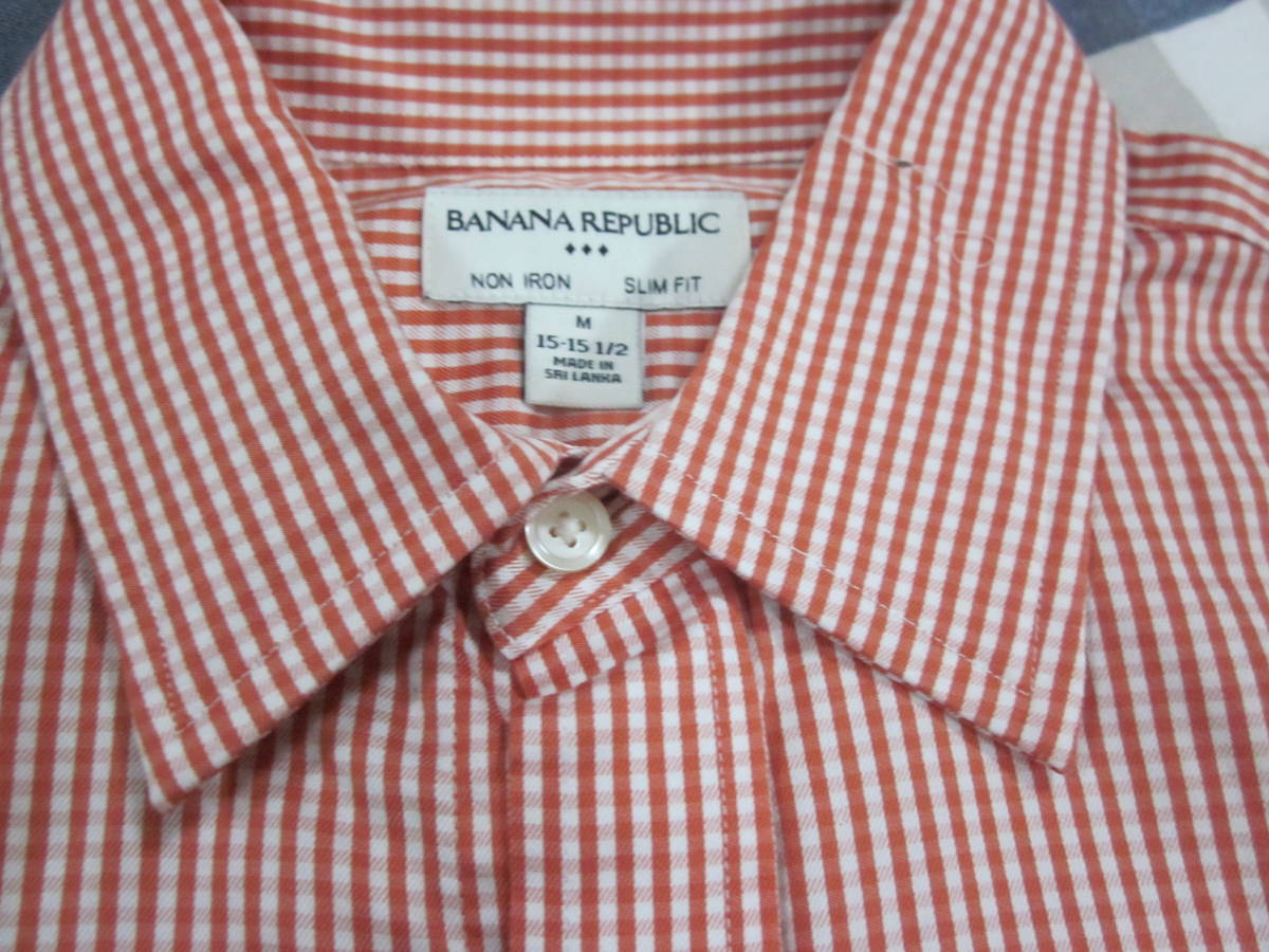 ■ Banana Republic オレンジのギンガムチェック メンズ長袖シャツ Mサイズ 素人採寸ですが 肩幅≒43cm、身幅≒50cm (脇下) 、袖丈≒60cm、着丈≒73cm