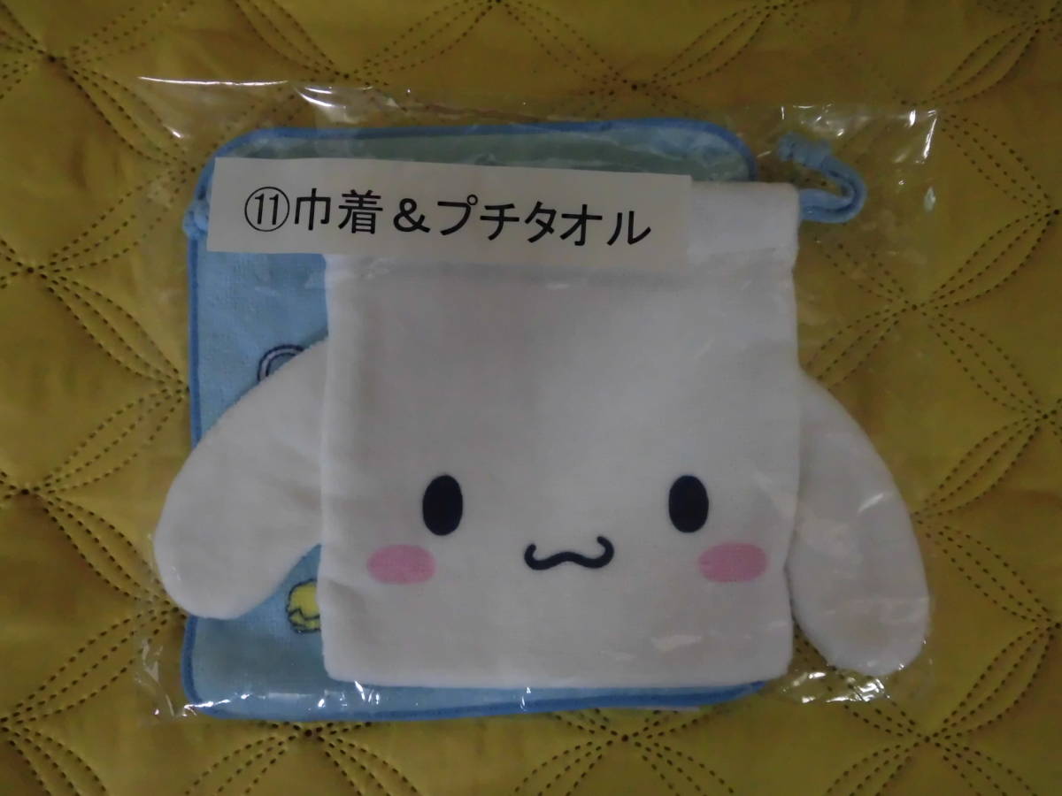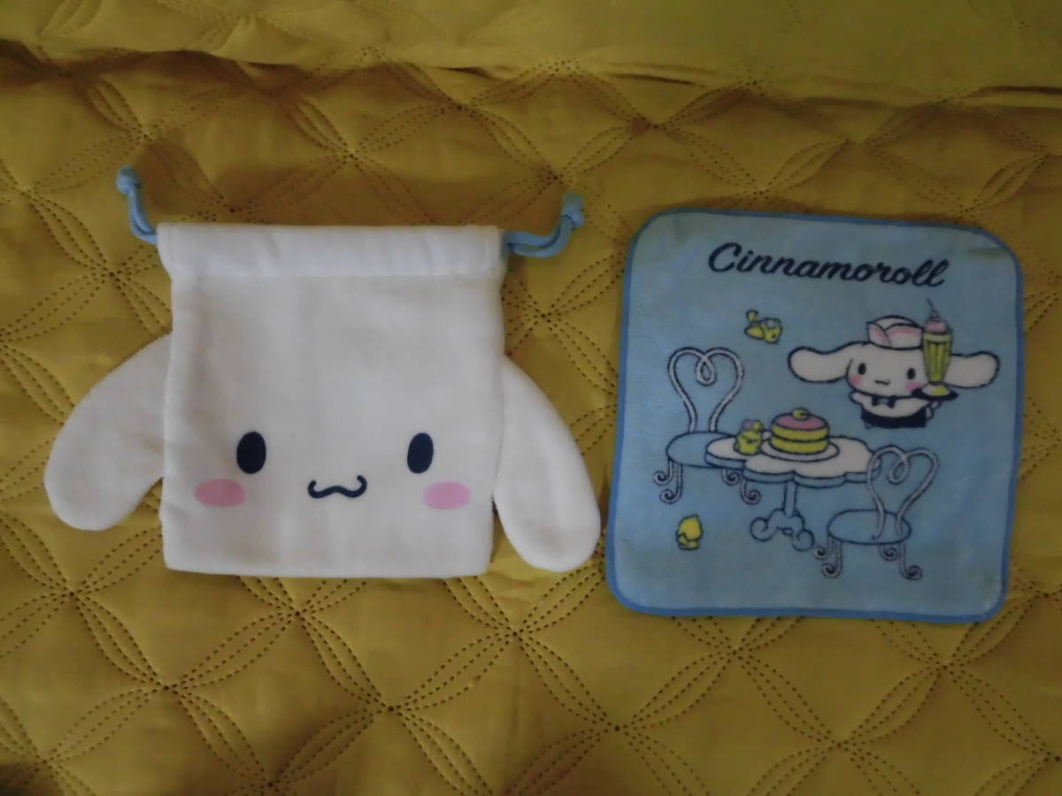 ●即決!送料無料!●巾着&プチタオル●シナモロール●未使用/サンリオ当りくじ/顔型 コップ袋/ダイカット サニタリー袋/ハンカチタオル