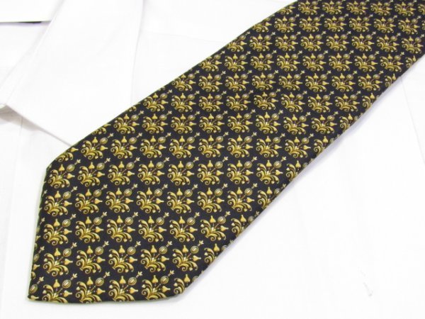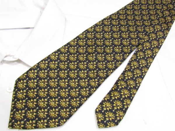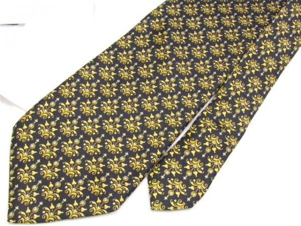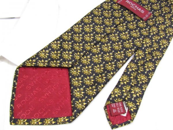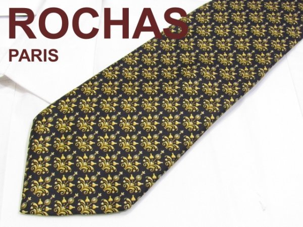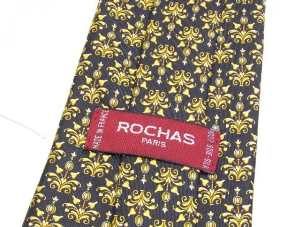 BB 823o ローチャス パリス ネクタイ ROCHAS PARIS FRANCE 黒系 プリント絵柄プリント