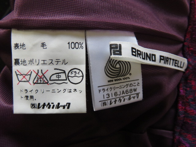 レナウン ルック 【 BRUNO PIATTELLI ブルーノピアッテリ高級ウールスカート 、お色は赤紫色です。