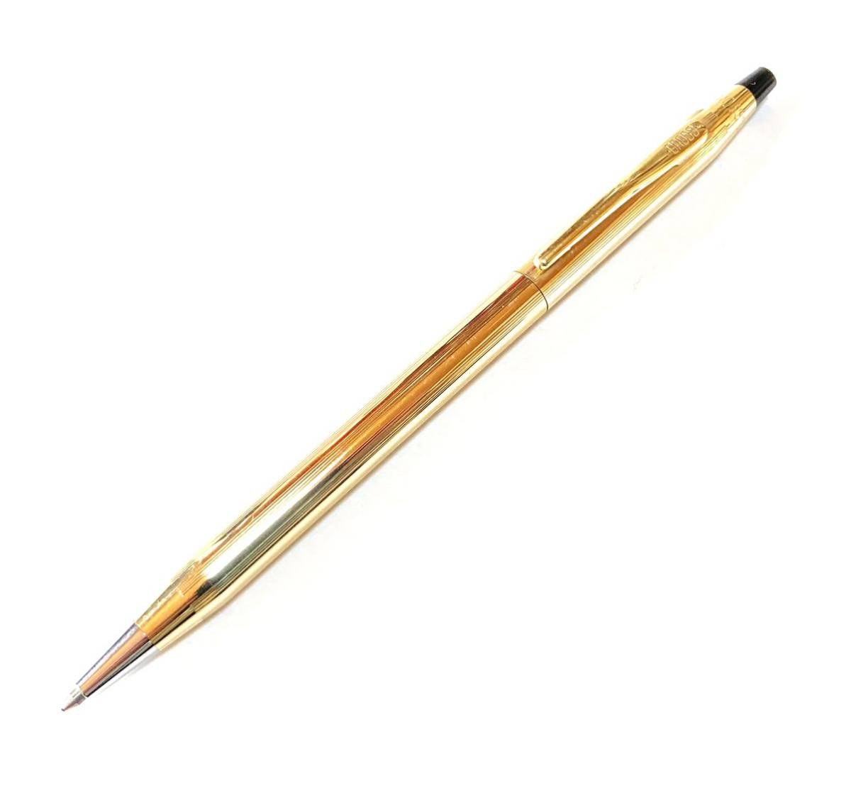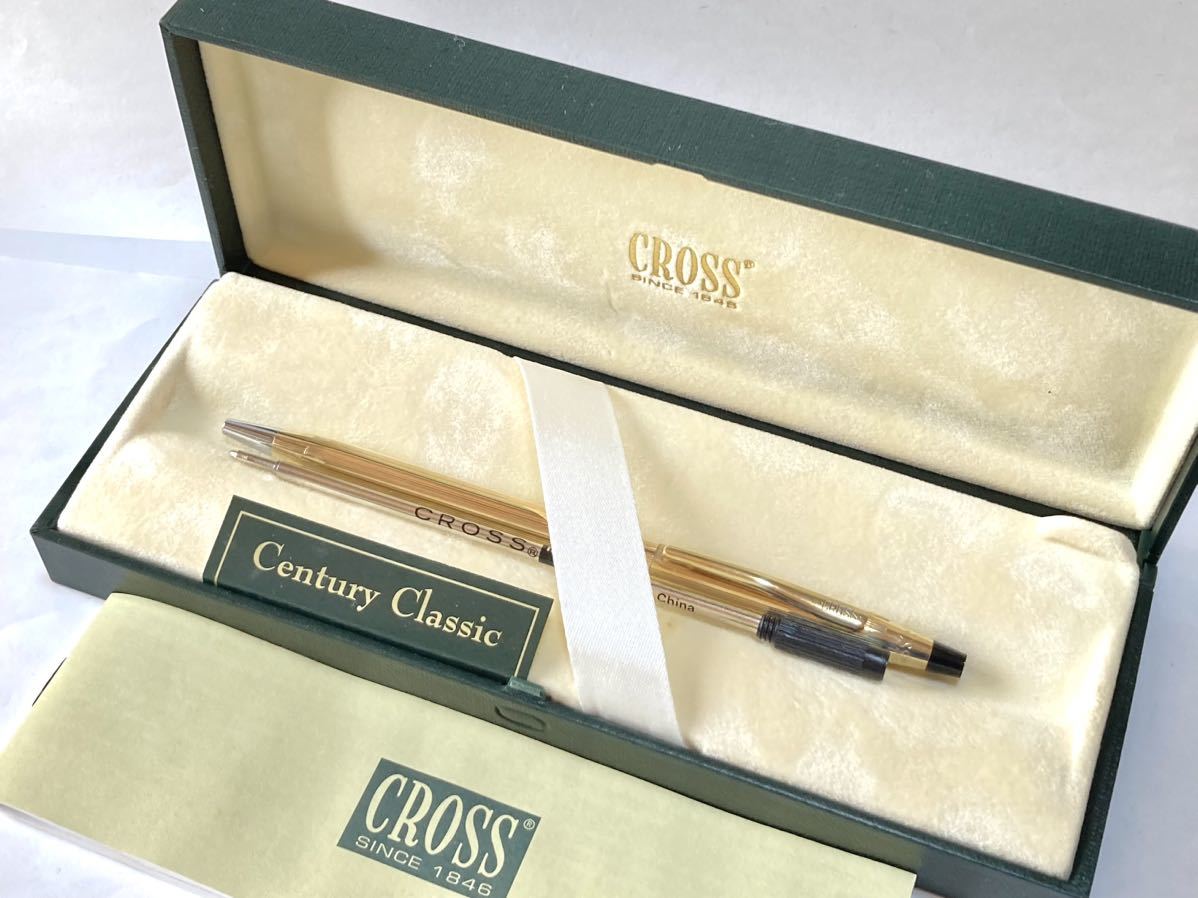 クロスの人気のクラシックセンチュリー、10kt、ボールペンです。ケース、黒の純正リフィルをお付けしました。重量18.8gに対して5%(1/20)の10金含有量がある価値あるお品です。あまり使用感のないピッカピカのきれいなお品です。ケースも付いています。この機会にいかがでしょうか?