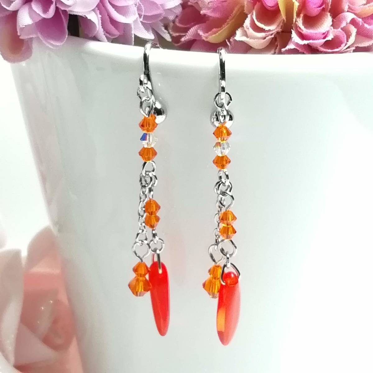 ★商品内容★ チェコダガーヒヤシンスとプレシオサのハンドメイドイヤリング★スワロフスキー/上品/シルバー/ダガー/クリスタル/オレンジ/チェコ/橙色 ビタミンカラーのチェコビーズと シルバーパーツを組み合わせた 情熱的な雰囲気のイヤリングです。*・.**.・。**.・。*・**。・ チェコプレシオサビーズの煌きが美しく 上品で活動的な大人の女性らしさを印象付けます*・.**.・。**.・。*・**。・ 普段使いはもちろん、お出掛けや 華やかなイベントなどにもお使い頂けるひと品です*・**.・。**.・。*・**。・. 【素材】 スワロフスキー5328クリスタルAB(オーストリア製))3mm チェコプレシオサ サン4mm チェコプレシオサ サン3mm チェコダガーヒヤシンス16mmx5mm チェーンシルバー カンより垂れ下がる長さは、約4.6㎝です。 Eー1007 ★注意事項★ ***~ご購入前に必ずお読み下さい~*** *・*・*落札後について*・*・* *落札後4日以内にお手続き、ご連絡が無い場合は落札者都合で削除致します。 *発送日指定・ご入金の予定が1週間以上先をお考えの方は、入札の前に質問よりご連絡くださいませ。 予めご了承の上、ノークレーム・ノーリターンでお願い致します。 *・*・*商品について*・*・* *一点一点心を込めて作っておりますが、手作りなため多少の歪み等あるかもしれません。 手作りの味わいと、世界で一つだけの作品とお考えいただければ幸いです。 *デリケートな商品ですので、強く引っ張ったりすると破損する事もあります。 お取り扱いにはご注意ください。 *ご覧のPC、スマホによっては画像と実物の色味が多少異なる場合があります。 *基本イヤリング金具は跳ね上げネジ付き金具にて作成しております。 **ご希望によりピアスへの変更も承っております。 【フックピアス…無料/キャッチピアス…別途追加料金120円】 *その他…樹脂ノンホールピアス(無料)・カン付き樹脂ノンホールピアス(無料)にも変更をお受け致します。 ~ご注文の際にメッセージ欄よりお申し付け下さい~ 尚、金具変更のご希望が無い場合は、掲載された写真の金具にてお送り致します。 *金属アレルギーや化学物質アレルギーなどへの対応はしておりませんので、ご心配な方はご遠慮下さいますようお願い致します。 *永くご愛用頂くために、ご使用後は柔らかい布等で軽く拭いてください。 *・*・*プレゼント用梱包のご要望もお受けいたします*・*・* *その際は、梱包費用が別途で必要となりますのでご注意ください。 また、ご希望の梱包タイプによって、発送方法が変わりますので、送料が別途必要となります。 *プレゼント用梱包タイプ 【袋→100円】 発送方法【クリックポスト(送料無料)】⇒【合計100円の追加料金】 *プレゼント用梱包タイプ 【箱→200円】 発送方法【レターパックプラス(別途520円)】⇒【合計720円の追加料金】 となります。 ◆ご希望の場合は、必ず商品ページをウォッチリストに登録した上で落札前に質問にてお問合せ下さい。◆ ◆ご希望を承り次第、一度出品を取り消し、プレゼント用梱包費用、送料などを追加した金額へ変更し、再出品致します。◆ *再出品後に再度検索して頂く手間が省けますため、プレゼント梱包をご希望の場合は必ずウォッチリストへのご登録をお願い致します。 金額変更後の再出品から3日以内に落札されなかった場合、誠に勝手ながら購入する意思がないとみなしまして、元の金額へ修正致します。 また、修正後、再度プレゼント用梱包のご希望のお問い合わせを頂きましても、お断りをさせていただきますのでご注意ください。 ご不明な点がございましたら、落札前に質問よりお願い致します。 ***ご質問について*** *ご購入前にお願い致します。 日中は仕事をしておりますので、ご返事が直ぐに出来ない場合がございます。 出来る限り早い対応を心がけますが、ご了承ください。 また、発送までには、お振込み確認後、翌日の発送を心がけておりますが、仕事の都合により2~3日程かかる場合がございます。(その際にはナビにてご連絡いたします) お急ぎの場合は、極力対応いたしますが、場合によっては対応致しかねる事もあります。ご了承下さいませ。 | |||