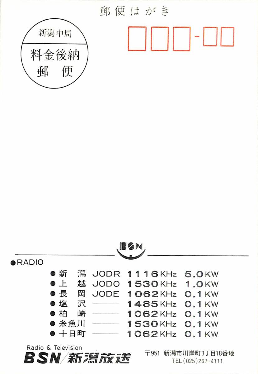 | 【商品名】・・・JODR(★BSN・新潟放送)のベリカード。 【コメント】・・・昭和30年代~50年代のベリカードは大変貴重です! ■当方、1枚のみ所有していますので即決で落札者様のコレクションになります! 【国名・地名】・・・日本★新潟県。 【受信データ】・・・1970年代(★昭和50年代前半)・MW1116KHZを受信。 【記載事項】・・・未記入。 【状態】・・・シワ、汚れ、シミ、焼け、色あせ等があります。 ■カードの状態は。画像を参考に判断して下さい。 ■この機会にぜひこのベリカードを貴方のBCLコレクションに加えて下さい! | |