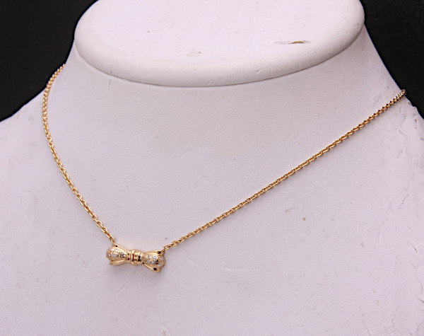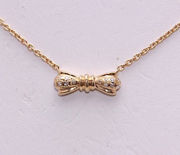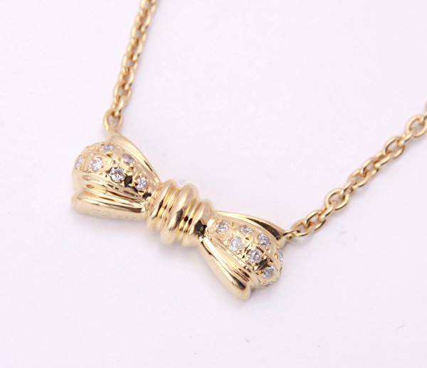 メレダイアが留められた小さなリボンモチーフのネックレスです。