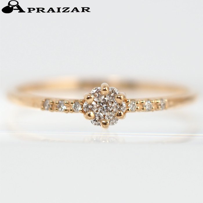 | COCOSHINIK ココシュニック K10ピンクゴールド ダイヤ リング 10号 です。 センターダイヤモンドの周囲にメレダイヤモンドを贅沢にあしらったリング。肌なじみのよいK18ピンクゴールドに煌めくダイヤモンドが華やかな大人の女性を演出してくれます。1つでもレイヤード使いも楽しめコーディネートを選ばず永く愛用できるアイテムです。 イエローゴールドに若干の小キズ程度の綺麗な商品です。皆様のご入札お待ちしております。 |