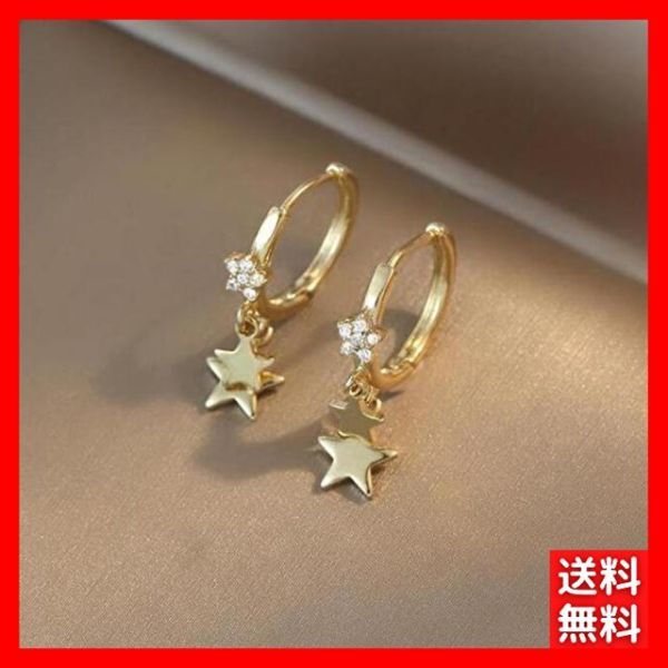 ピアス ゴールド スター 星 ラインストーン フープ シンプル レディース 韓国 キラキラ 綺麗 可愛い 大人 ファッション #C1221-8
