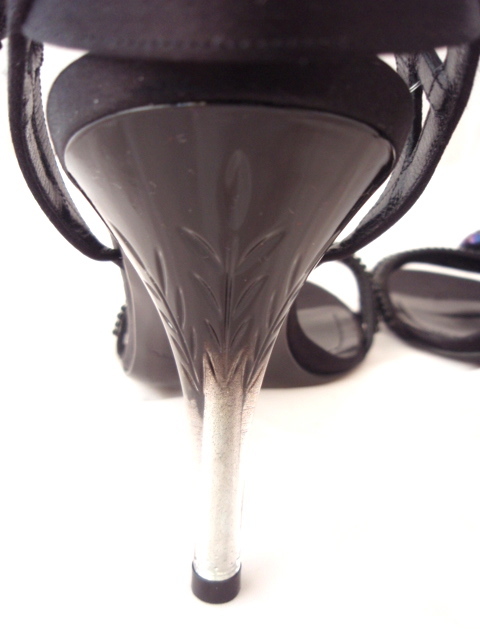 ヒールには、葉っぱのようなモチーフがきざまれ、ブラックと透明のグラデーションがとても素敵です。