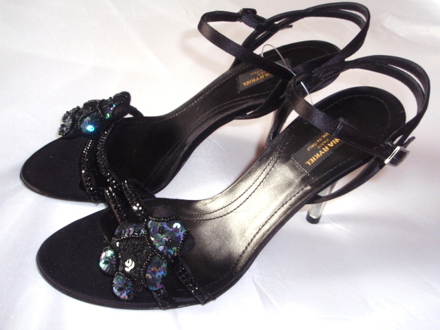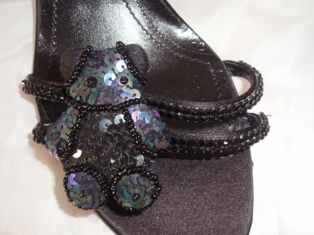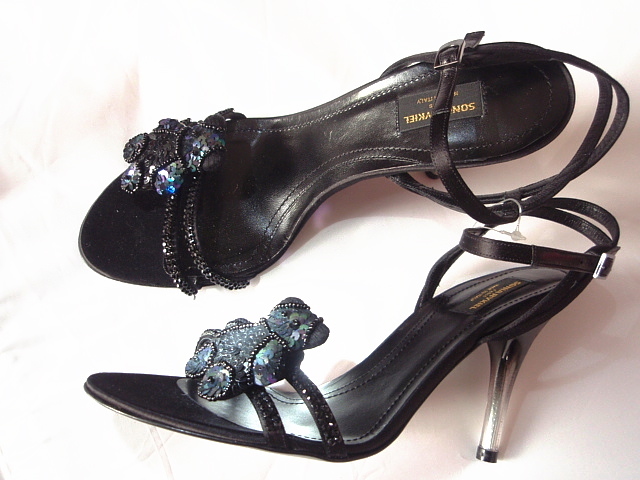 ソニアリキエル サンダル くま 黒 新品 38,5 24.25cm スパンコール MADE IN ITALY ビーズ バックベルト エレガント ヒール ラインストーン