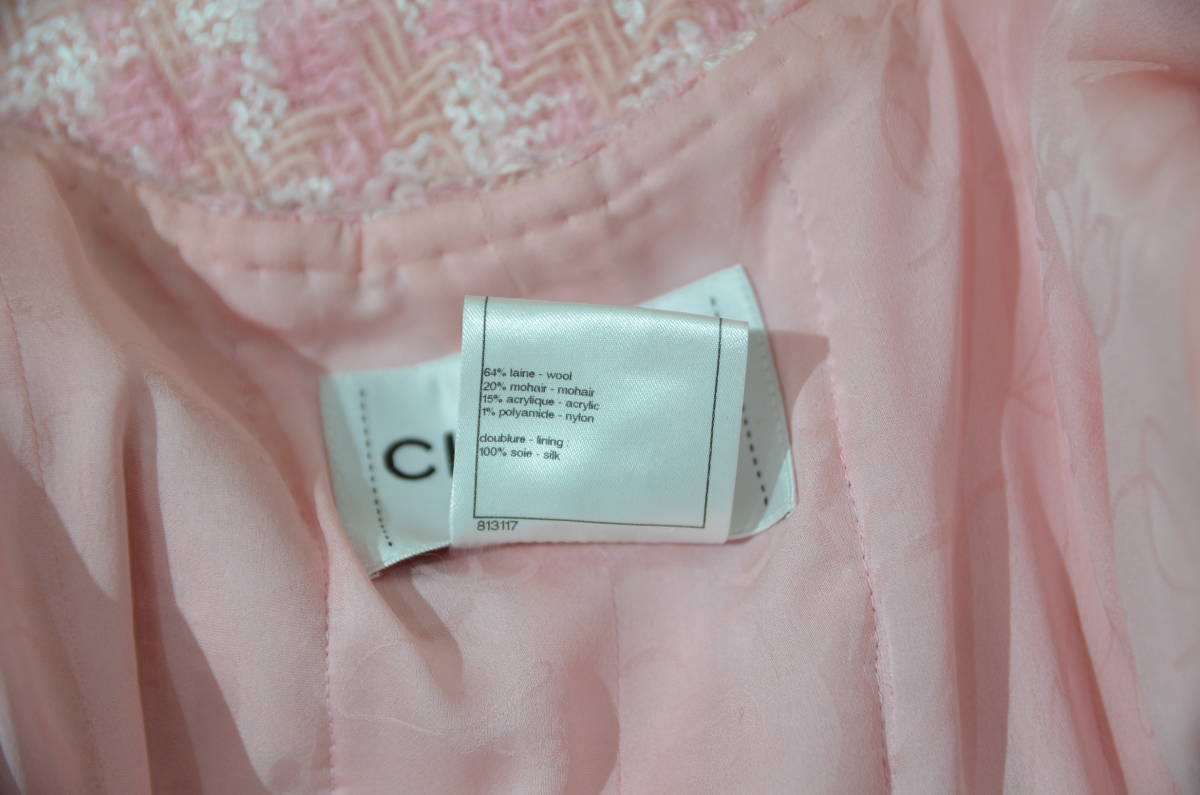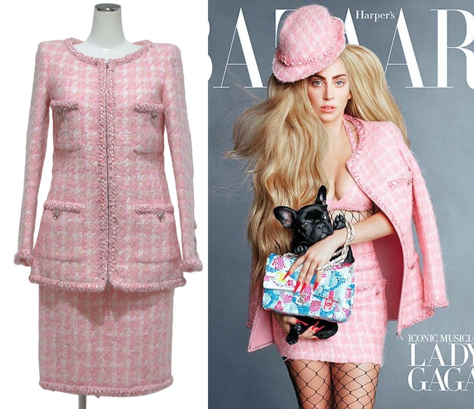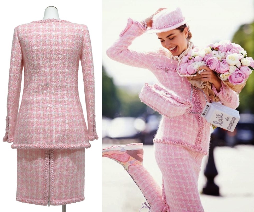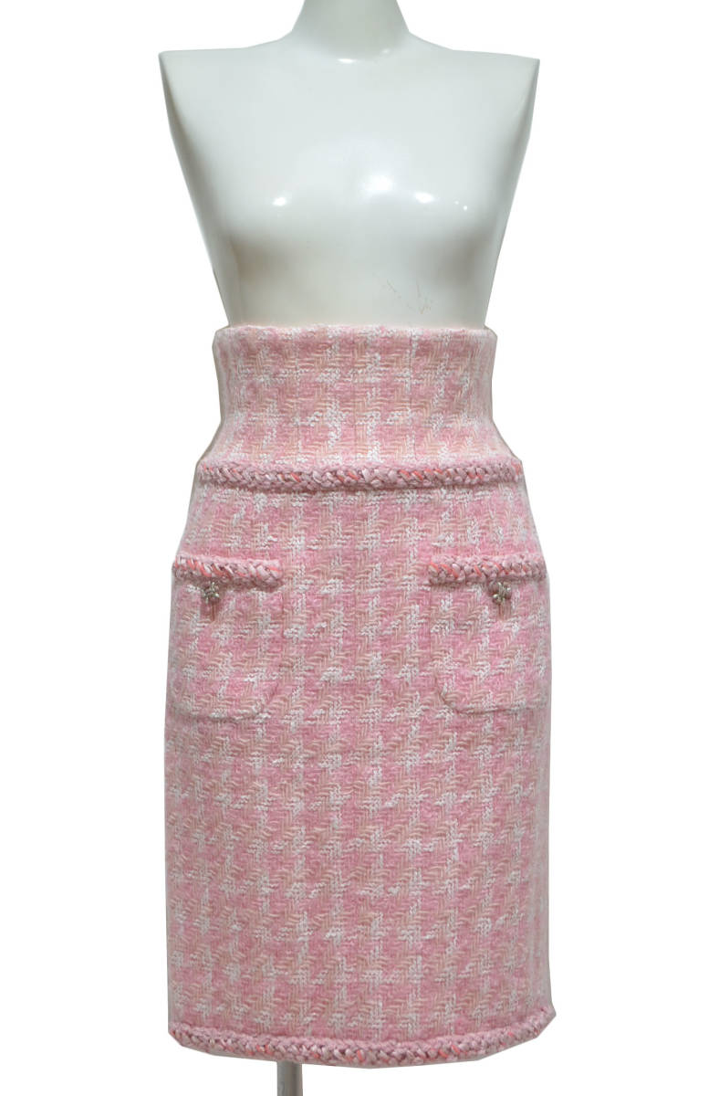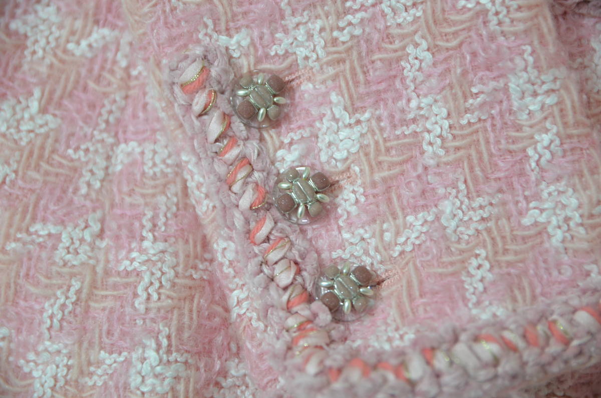 CHANEL シャネル 14K 装飾釦 ピンク ツイード セットアップ スーツ ノーカラー ジャケット スカート