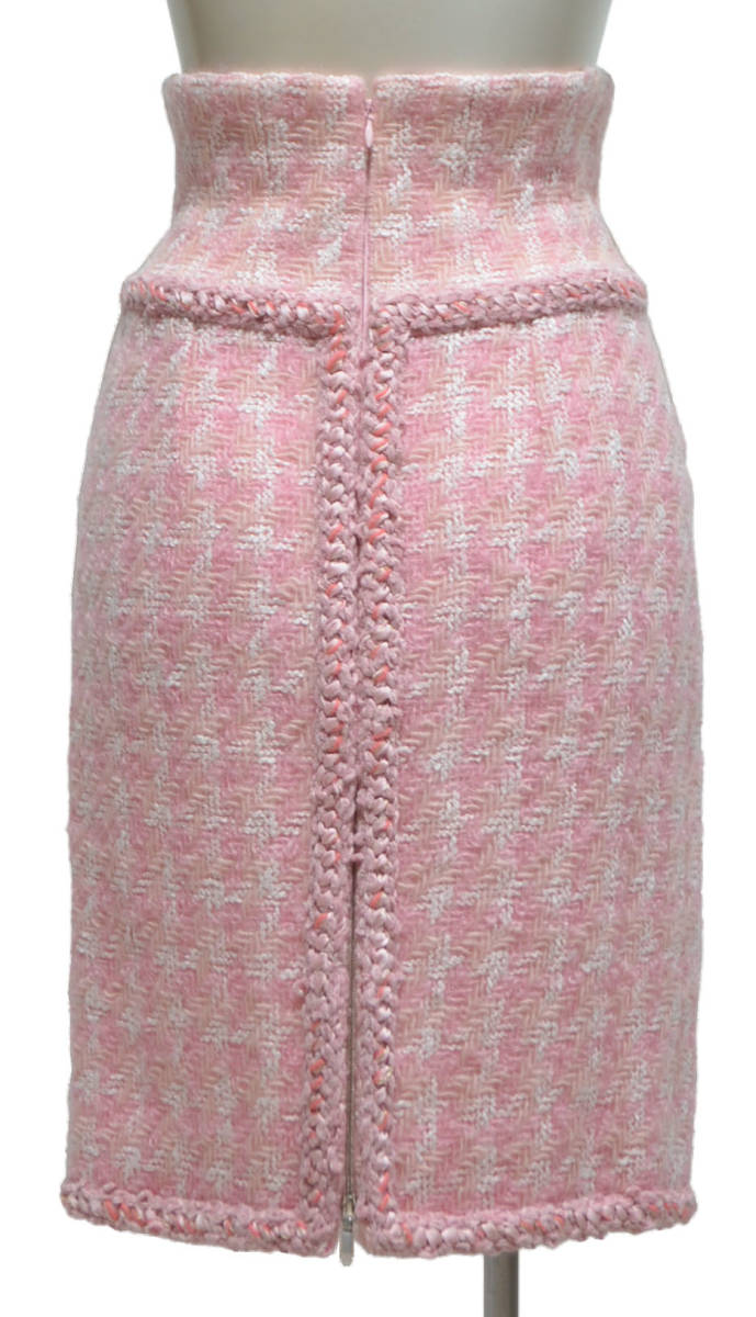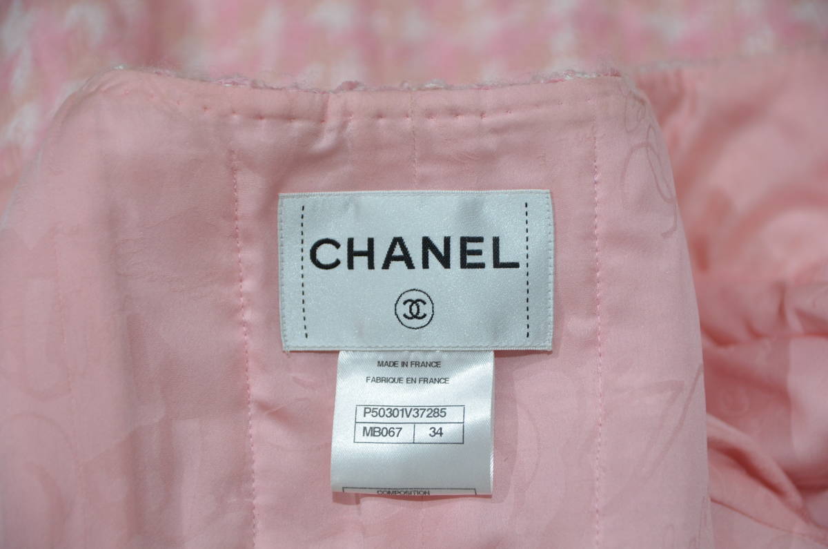 CHANEL シャネル 14K 装飾釦 ピンク ツイード セットアップ スーツ ノーカラー ジャケット スカート 34 Y-315415