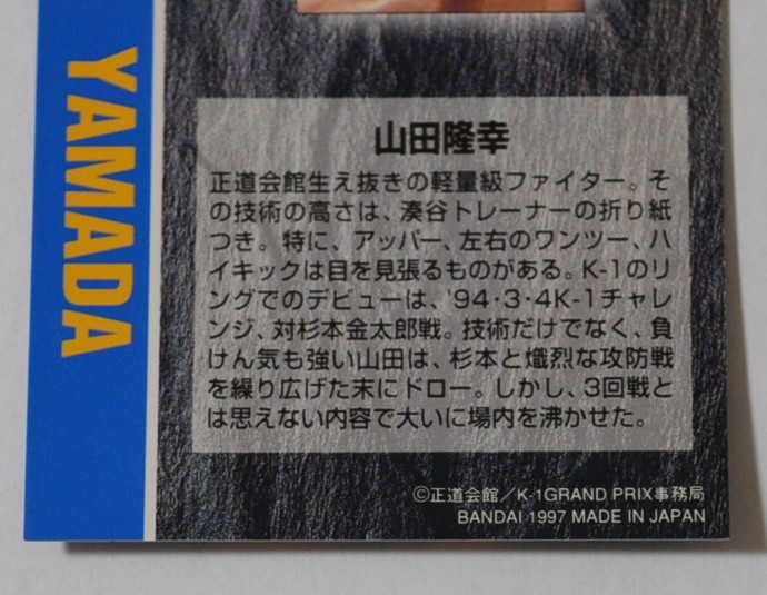 K-1●TAKAYUKI YAMADA 山田隆幸●格闘技 トレーディングカード
