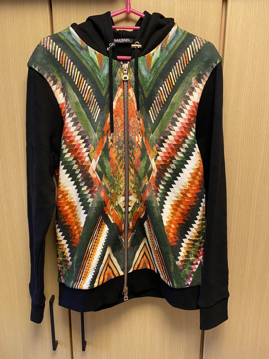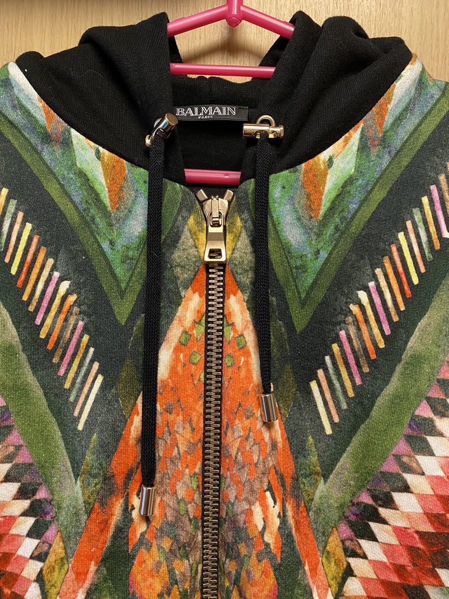 国内正規 17SS BALMAIN バルマン サイケデリック 柄 ジップアップ フーディー パーカー XS