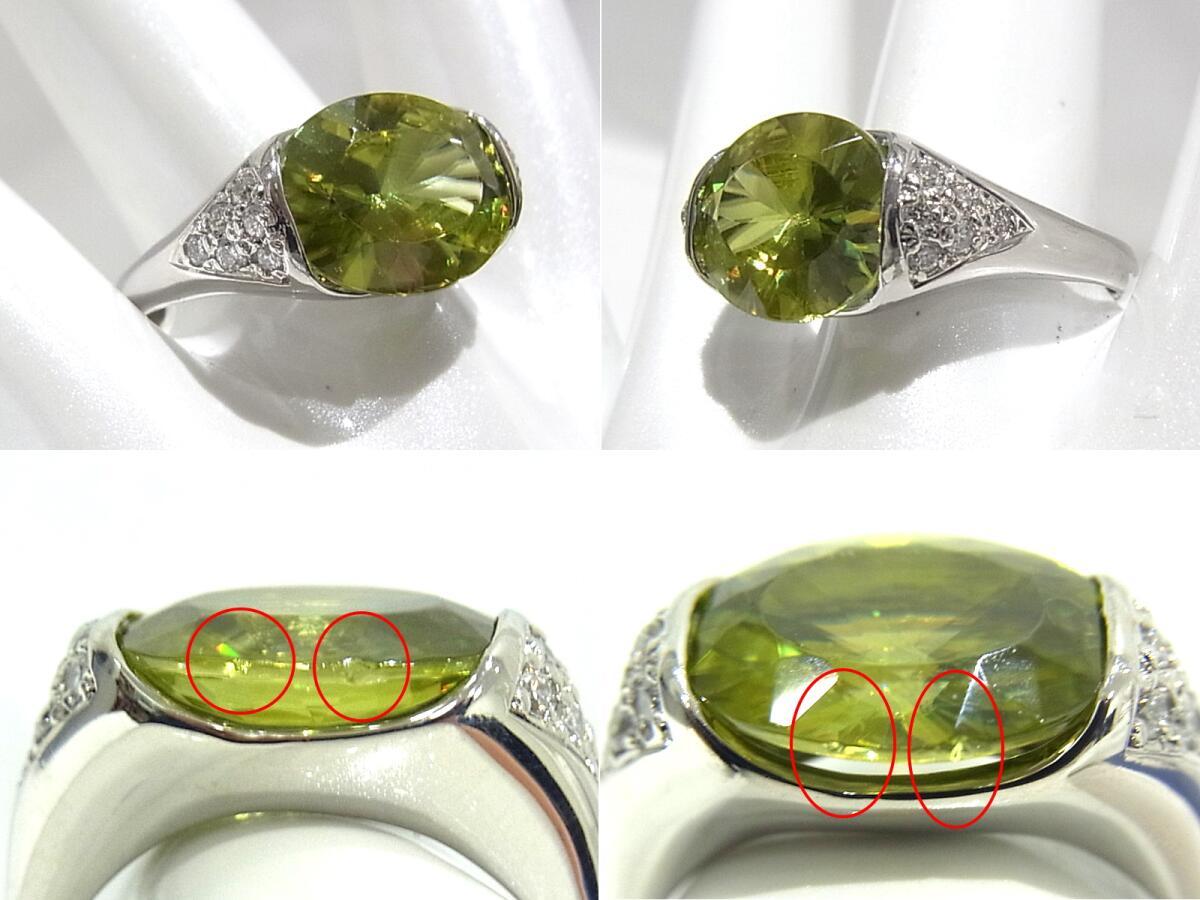 詳細・備考 | ■美しいリングが入荷致しました。スフェーンとダイヤがきらきらと輝き、女性らしくゴージャスな印象を与えてくれます。 ■当店にて新品仕上げ済です。 ※写真赤丸にあるように宝石のフチにカケがございます。また、宝石表面に小傷がございます。 ☆お使いのモニターによっては、写真と実物の色味が若干違う場合がございます。ご了承ください。 |