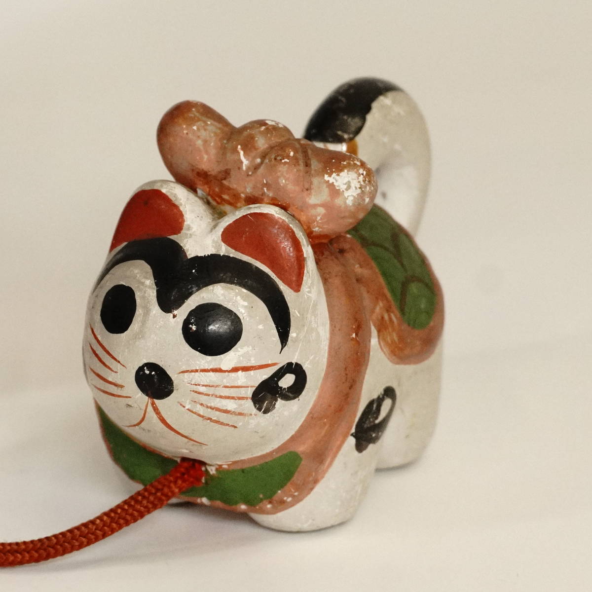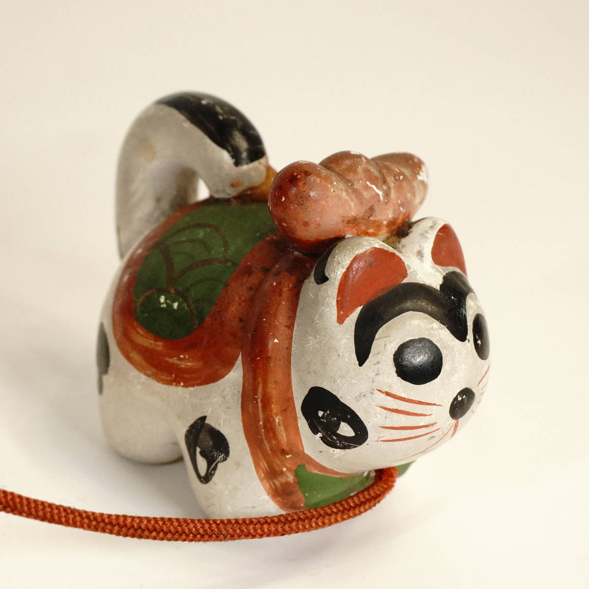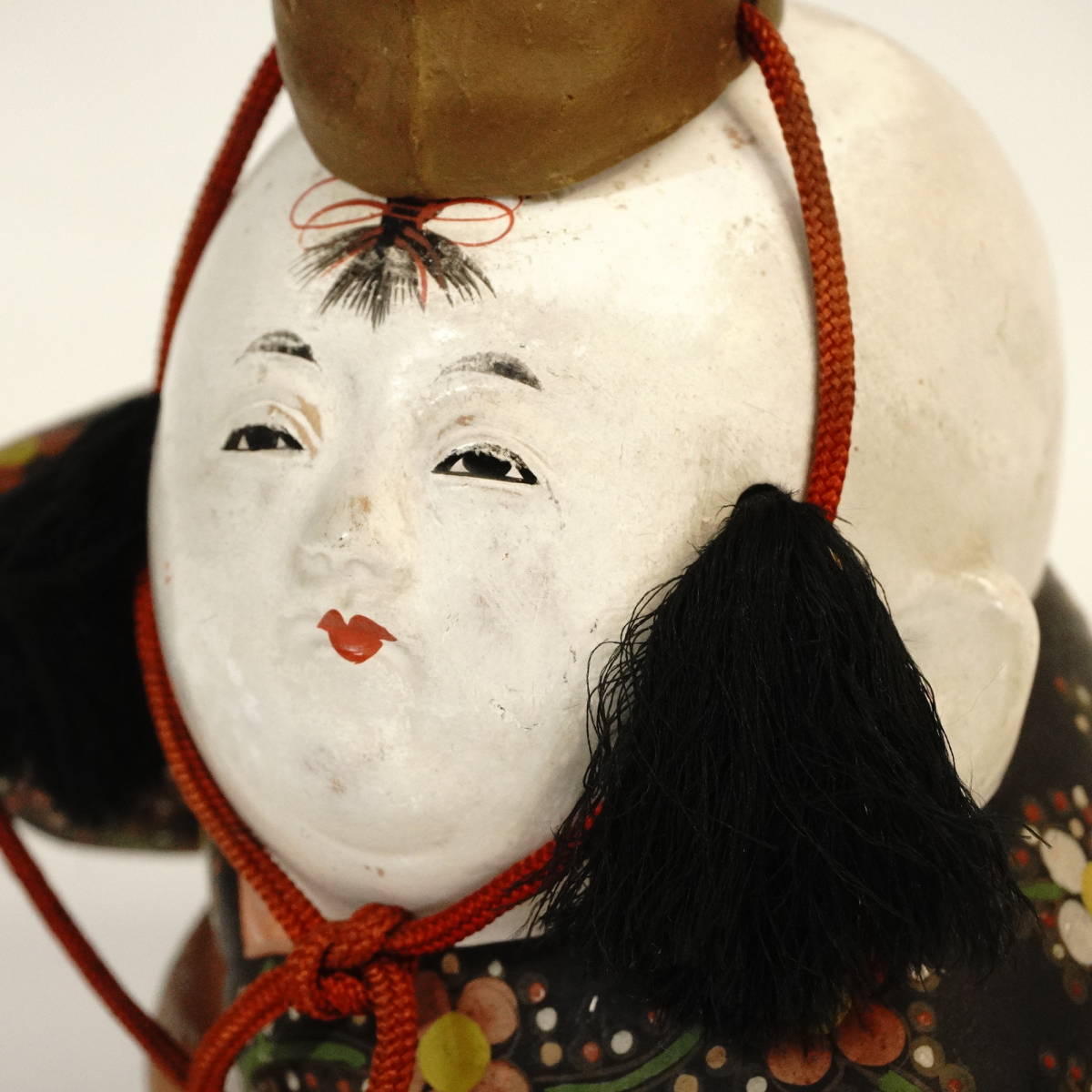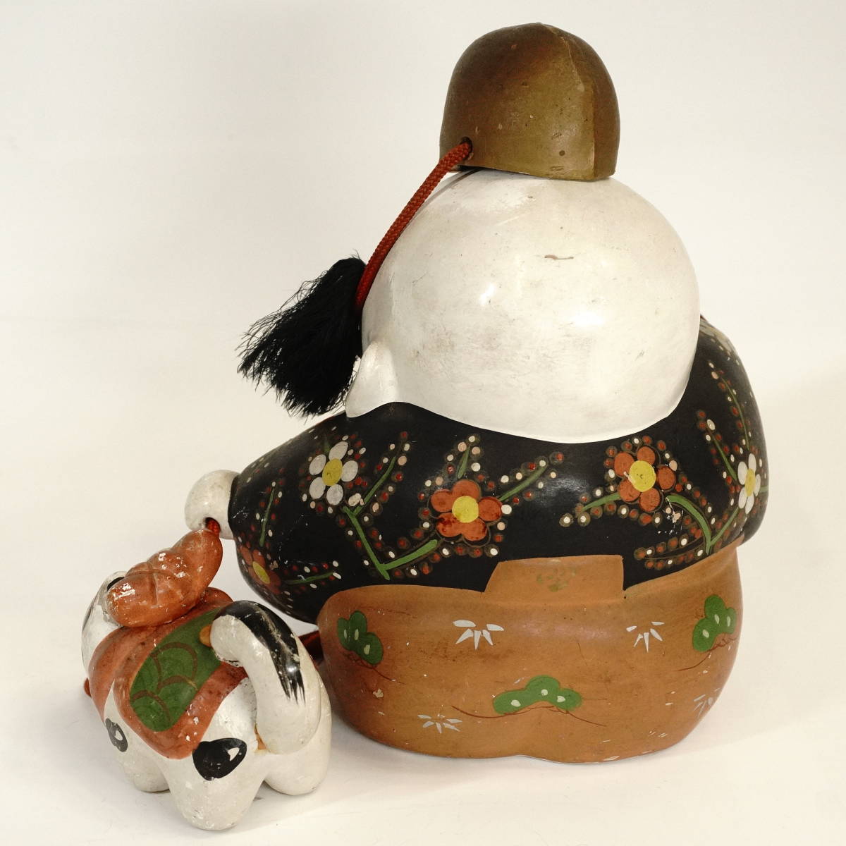 日本のアンティーク 大正〜昭和初期 陶器製 御所人形 犬引き 幅15cm 高さ17cm(童子) 絵付け、味わい、愛らしい佇まいが素敵です! IKT411