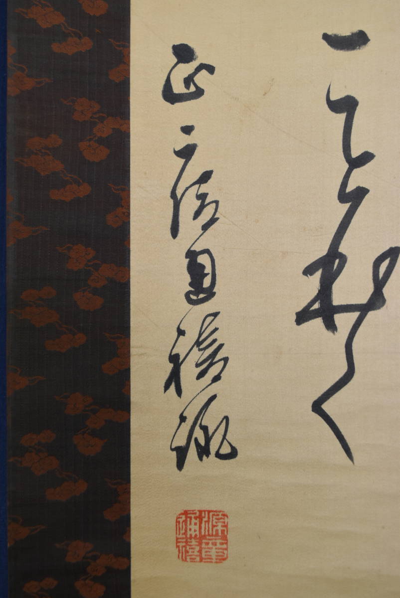 【作品状態】本紙は絖本肉筆です。本紙は薄汚れ、多数のシミ汚れ、巻ジワがあります。表装は多少の時代感がありますが、概ね良好です。