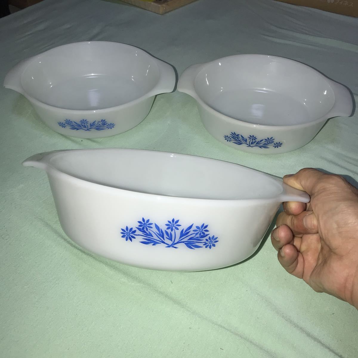 サイズ:内側直径20.5cm 深さ7cmが一つ。内側直径18.5cm 深さ6cmが2つ、合計3点のセットです。