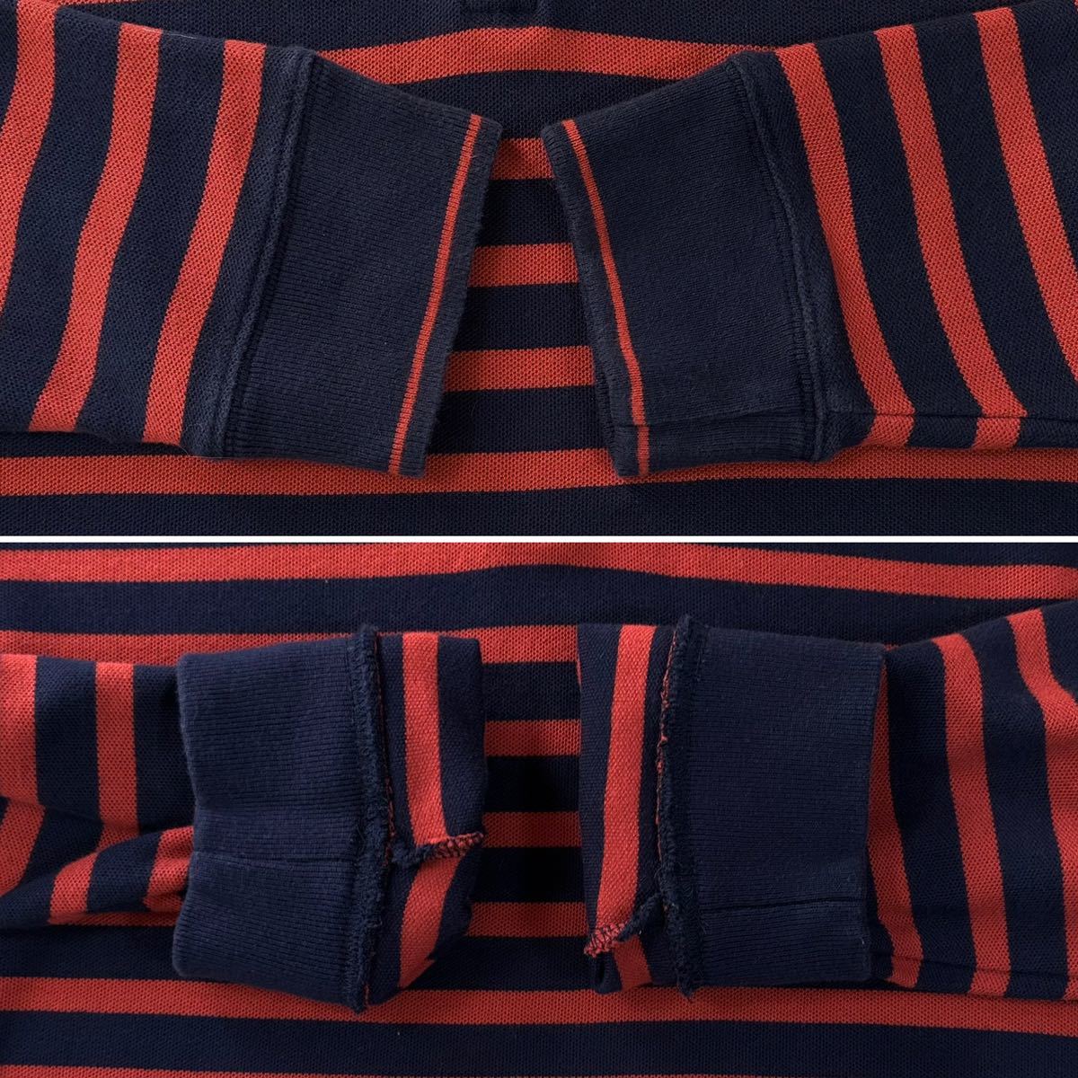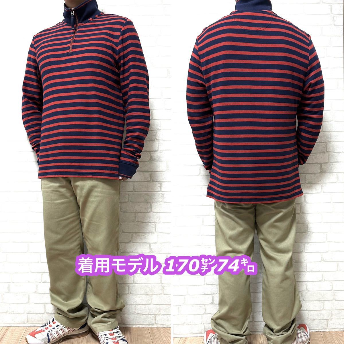 ☆コットン鹿の子素材を使用した快適な着心地◎更に全体にはネイビーとラディッシュ系の配色のボーダー柄が配された目を惹くアイテムです!