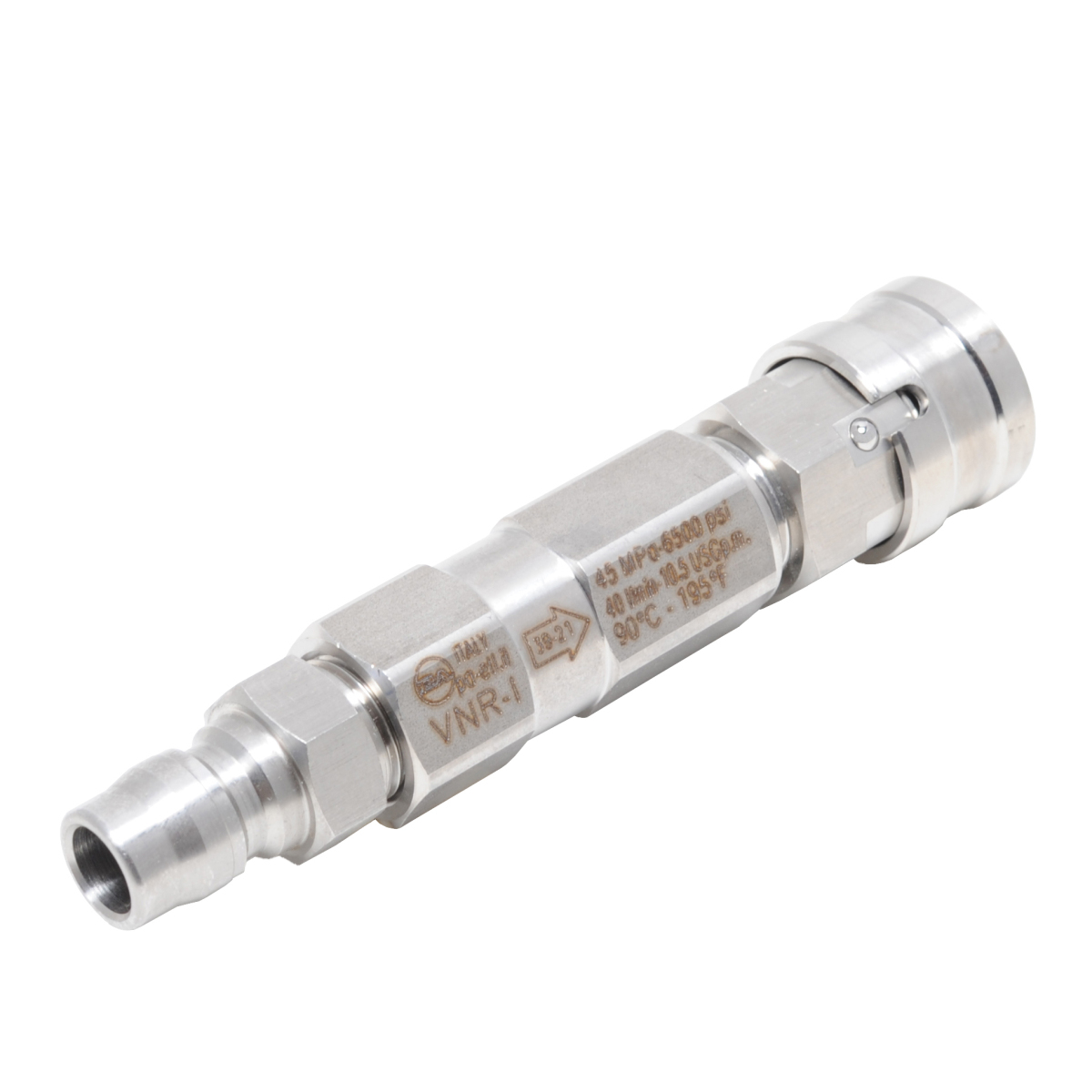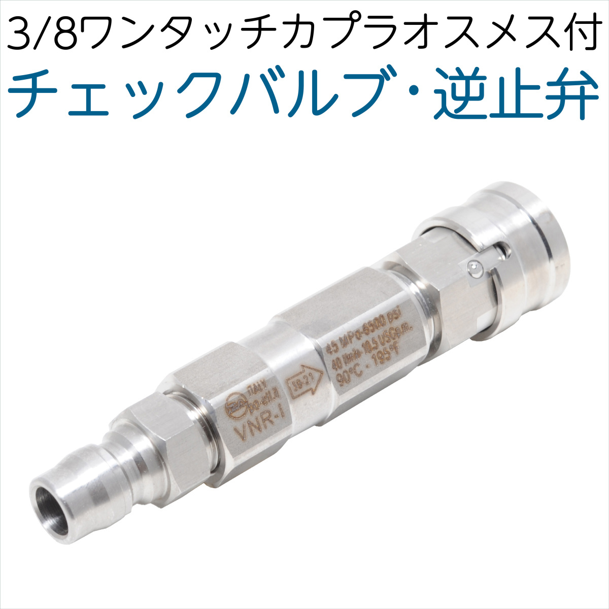 バックプレッシャーからポンプを守ります。ホースを長尺で使用する場合、特に上向にホースを伸ばして使用する場合、ポンプを守るために使用するチェックバルブ(逆止弁)です。ポンプも丈夫に作られており簡単には壊れませんが、ホースを40メートル以上で使用する場合は取り付けることを推奨しています。接続 ワンタッチカプラー3/8ソケット、プラグ最大耐圧 45MPa(450kgf/cm2)最大水量 40L/min耐熱温度 90℃