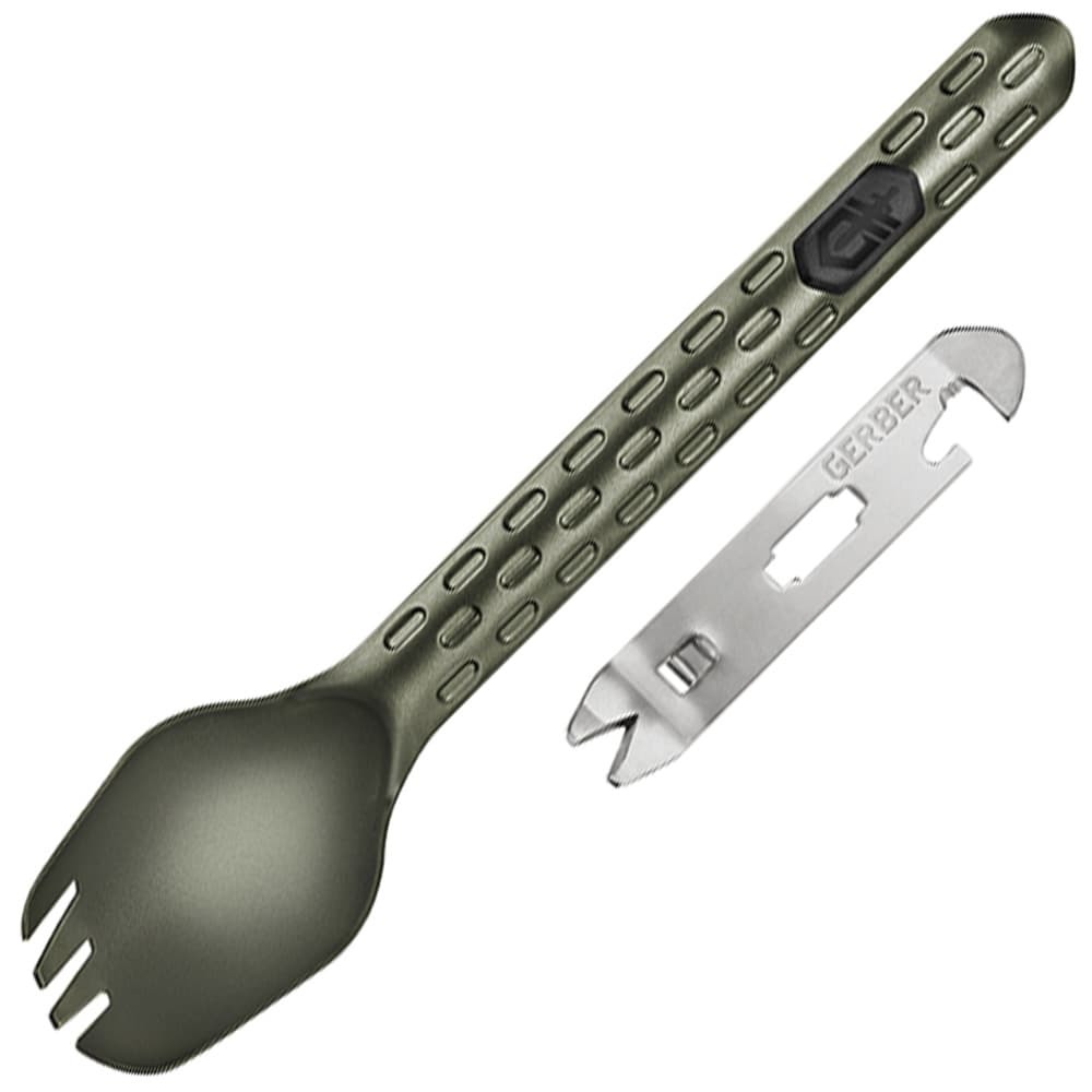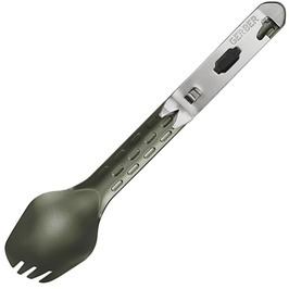 リーズナブルで高品質なナイフ、マルチツールなどを製造、販売するメーカー「GERBER」のフォークの裏側に小型のマルチツールが取り付けられたスプーン。