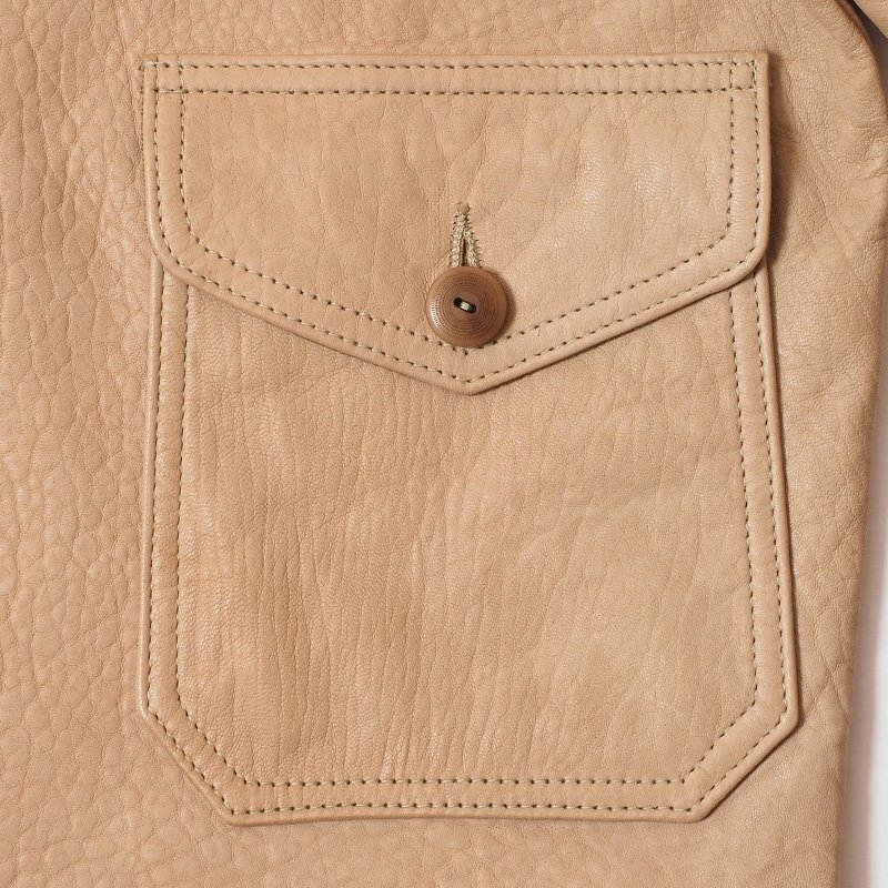 昨年発売したモデルをベースとして、経年変化による色合いの変化が顕著に期待できるナチュラルカラーのラムレザー、実在したリブデザインを再現して生産した直営点限定モデルです。