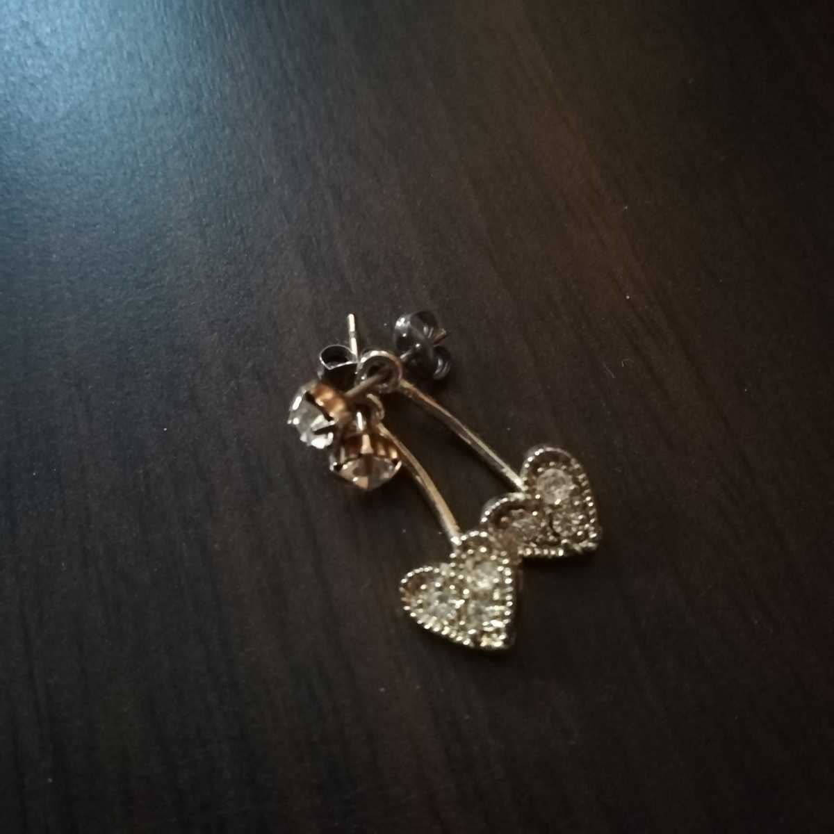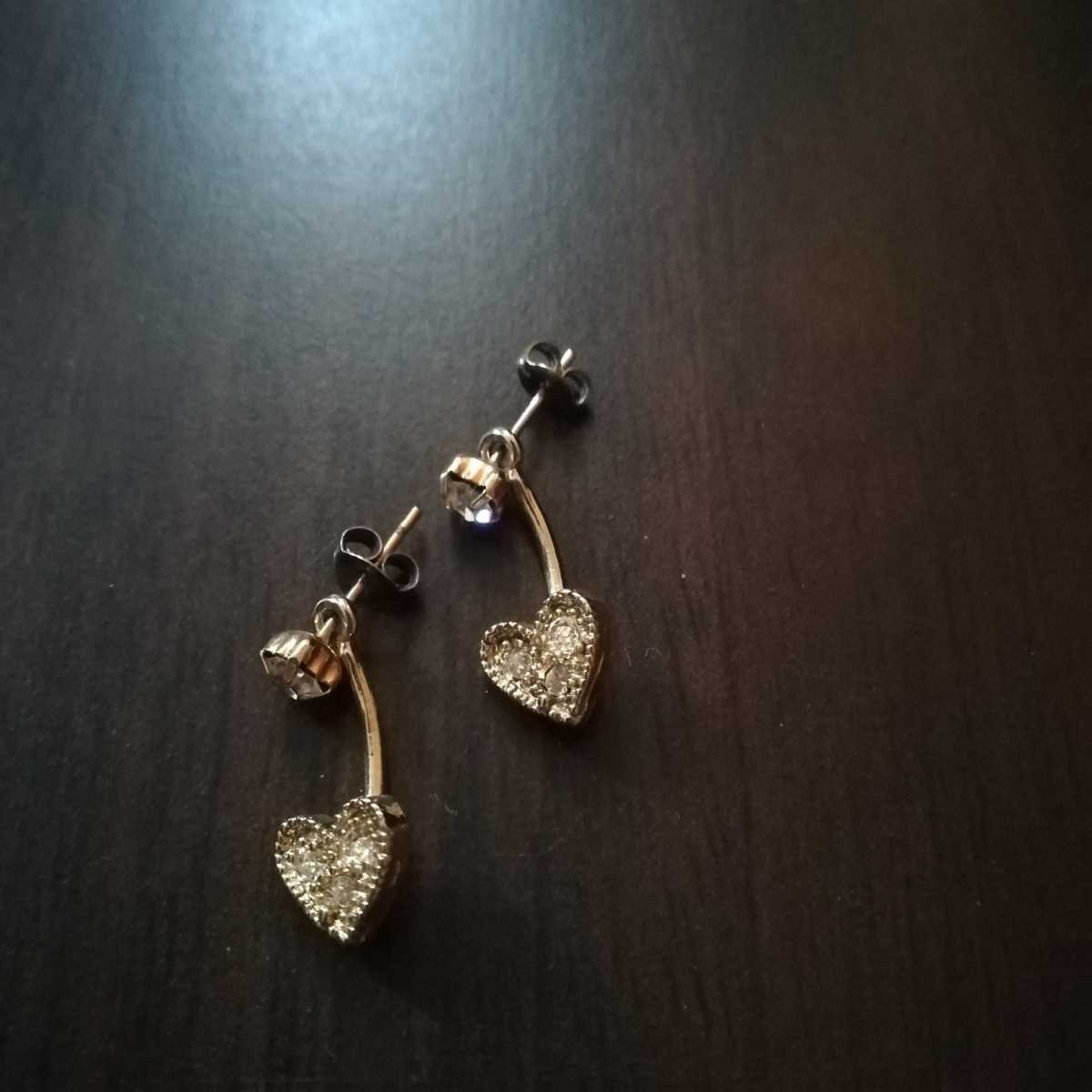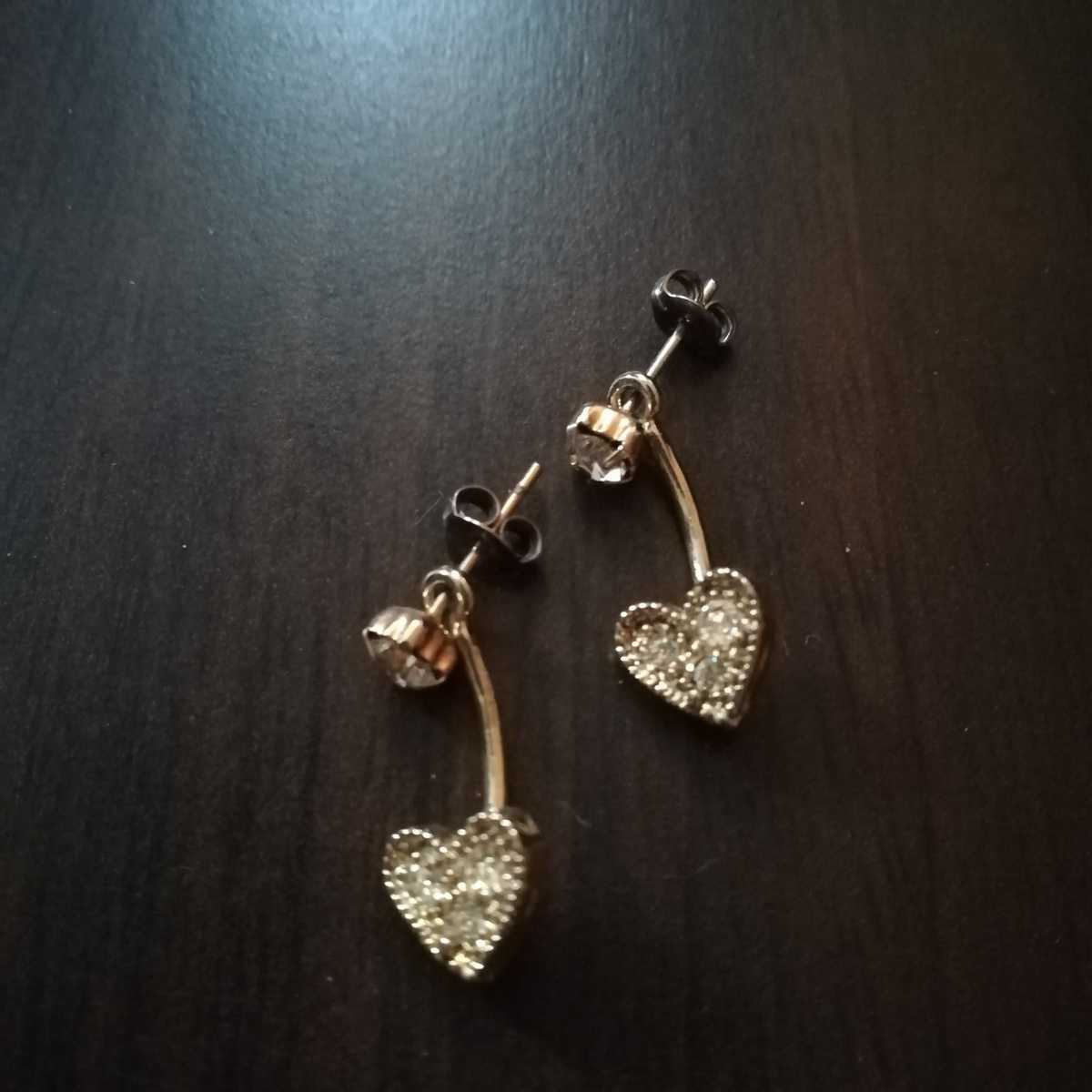 耳たぶの後ろでハートが揺れる上品で可愛いピアスです。